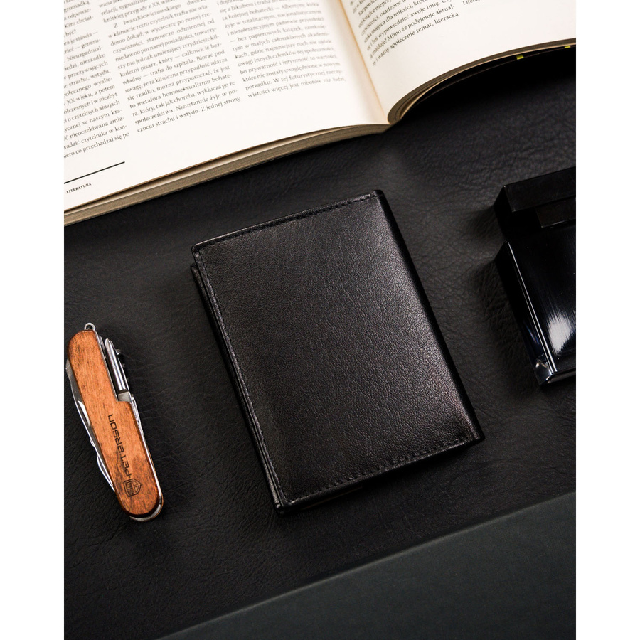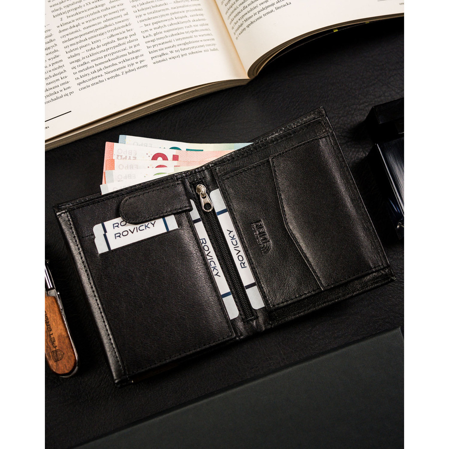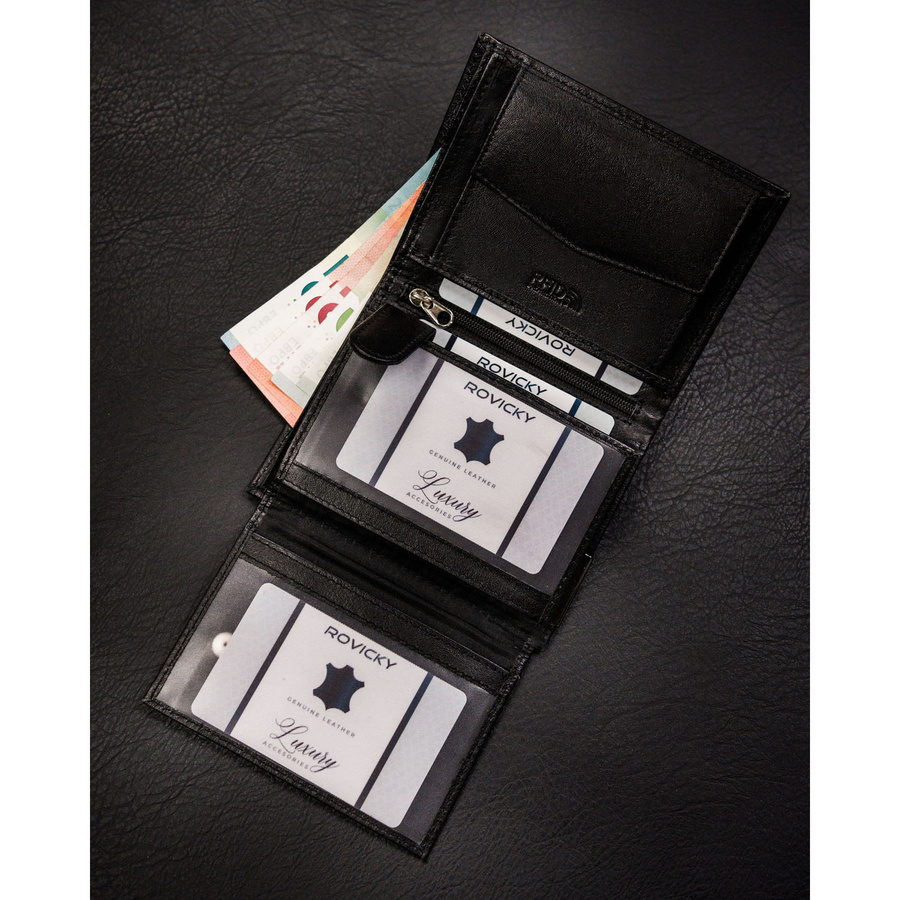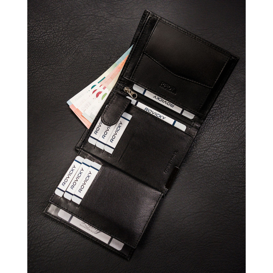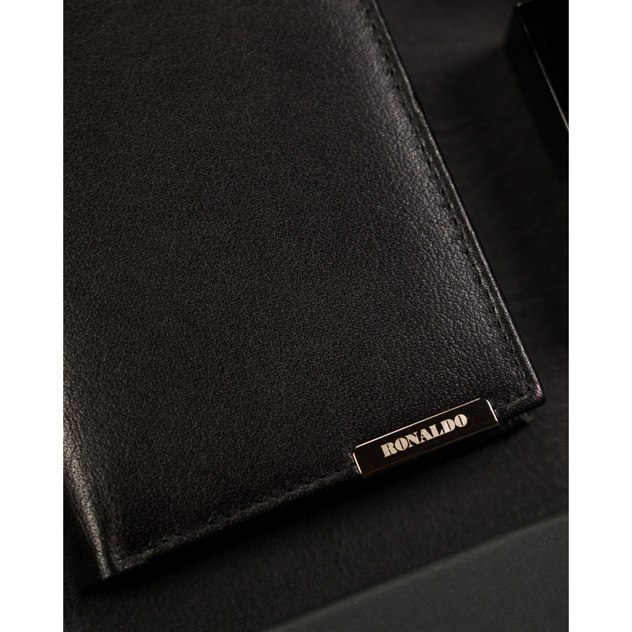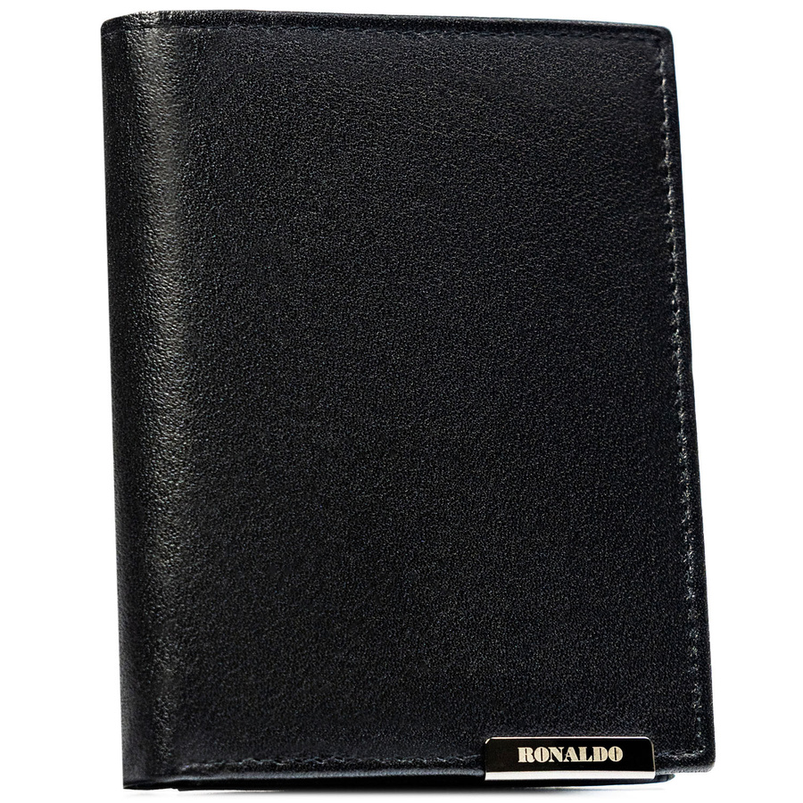 Czarny, pionowy portfel męski ze skóry naturalnej bez zapięcia zewnętrznego – Ronaldo
