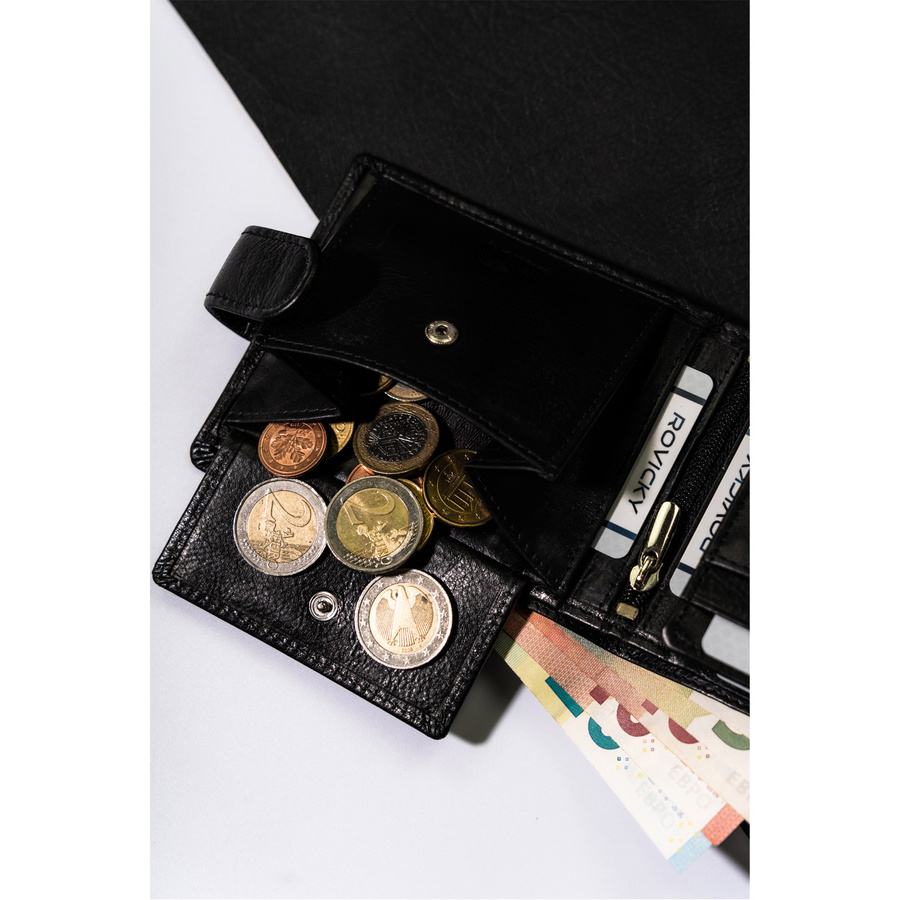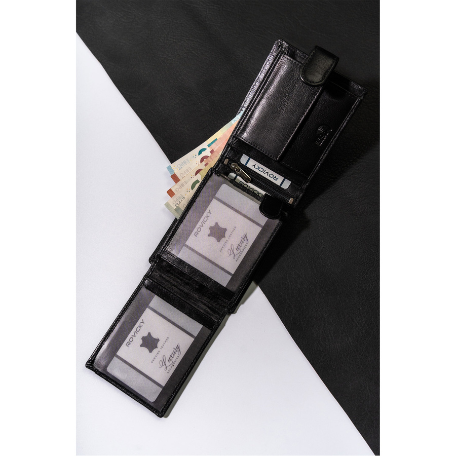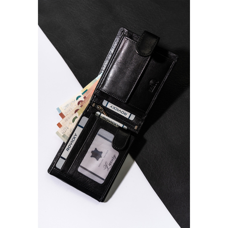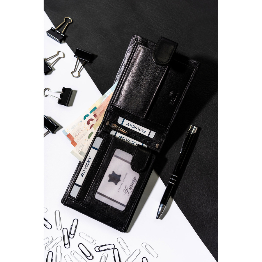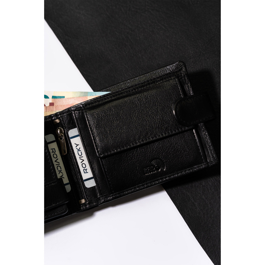 Czarny portfel skórzany męski z ochroną RFID – Rovicky