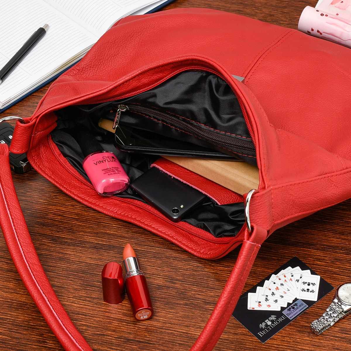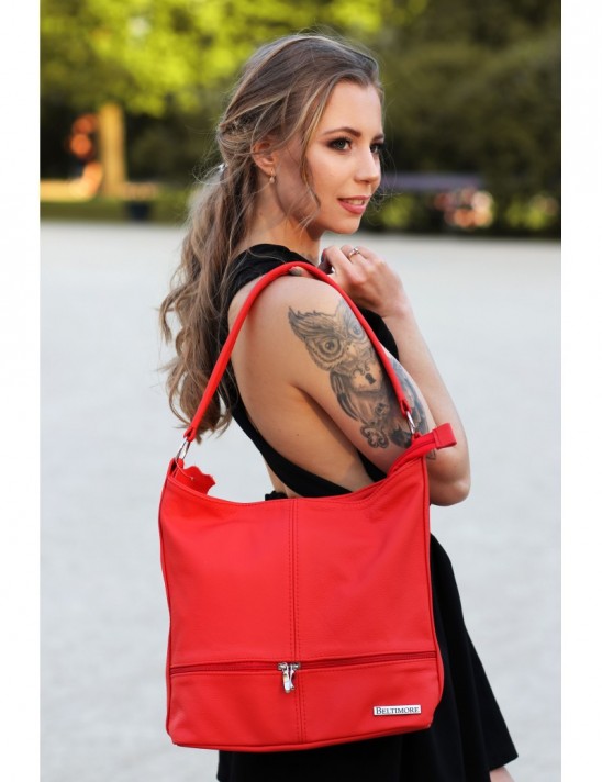 Czerwona listonoszka skórzana, damska torebka na ramię Beltimore I66