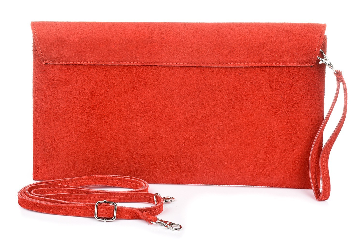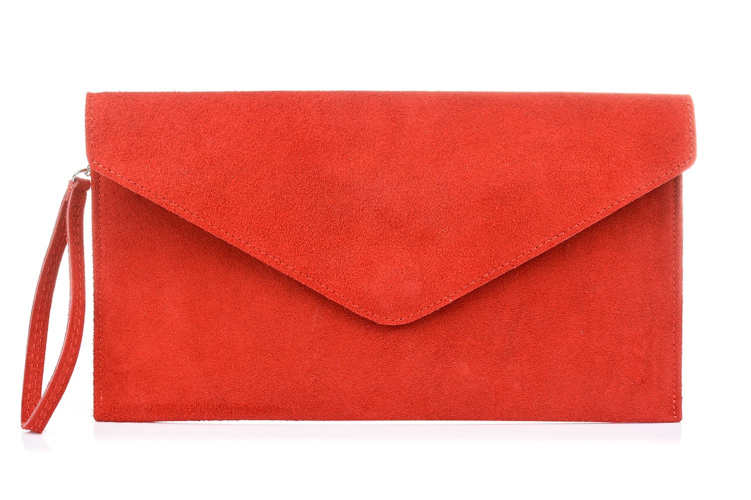 CZERWONA ZAMSZOWA SKÓRZANA WŁOSKA DAMSKA KOPERTÓWKA TOREBKA WIECZOROWA KOKTAJLOWA N12
