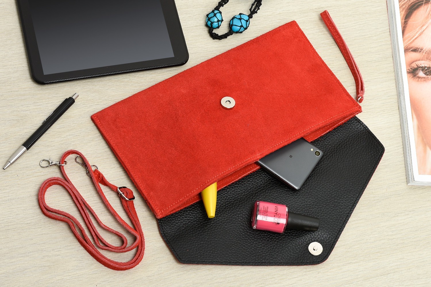 - Pomieści najpotrzebniejsze podręczne rzeczy takie, jak portfel, telefon, dokumenty i drobne kosmetyki