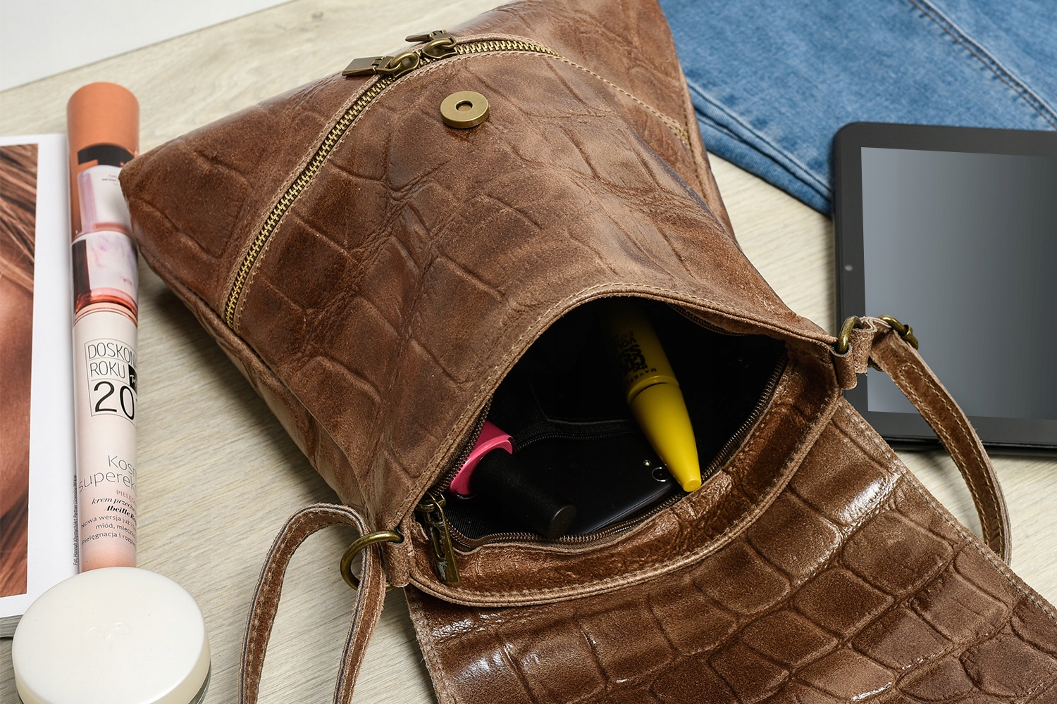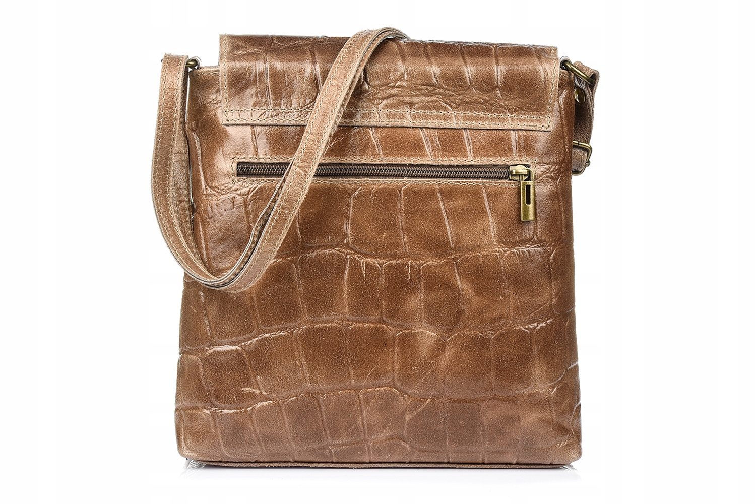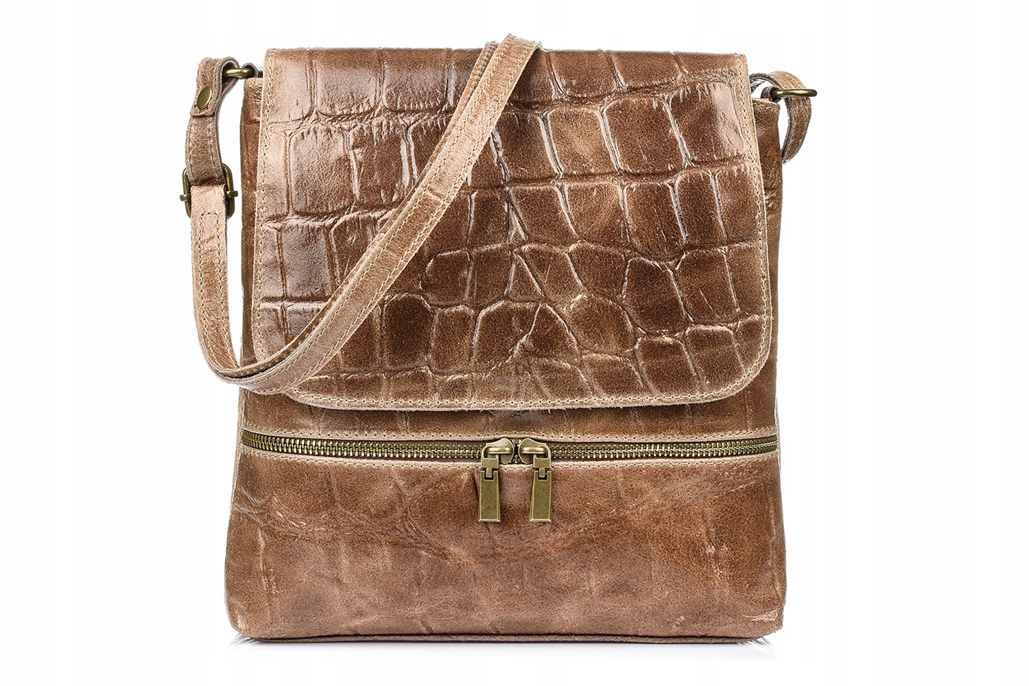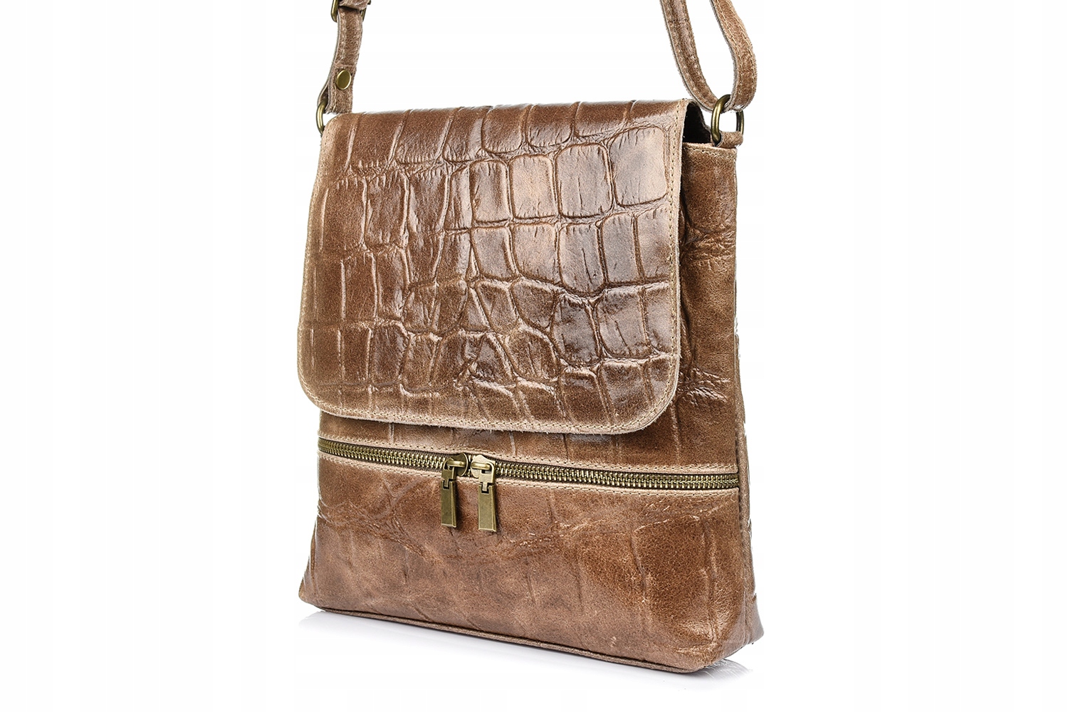 Damska Skórzana Włoska Listonoszka Pionowa Croco