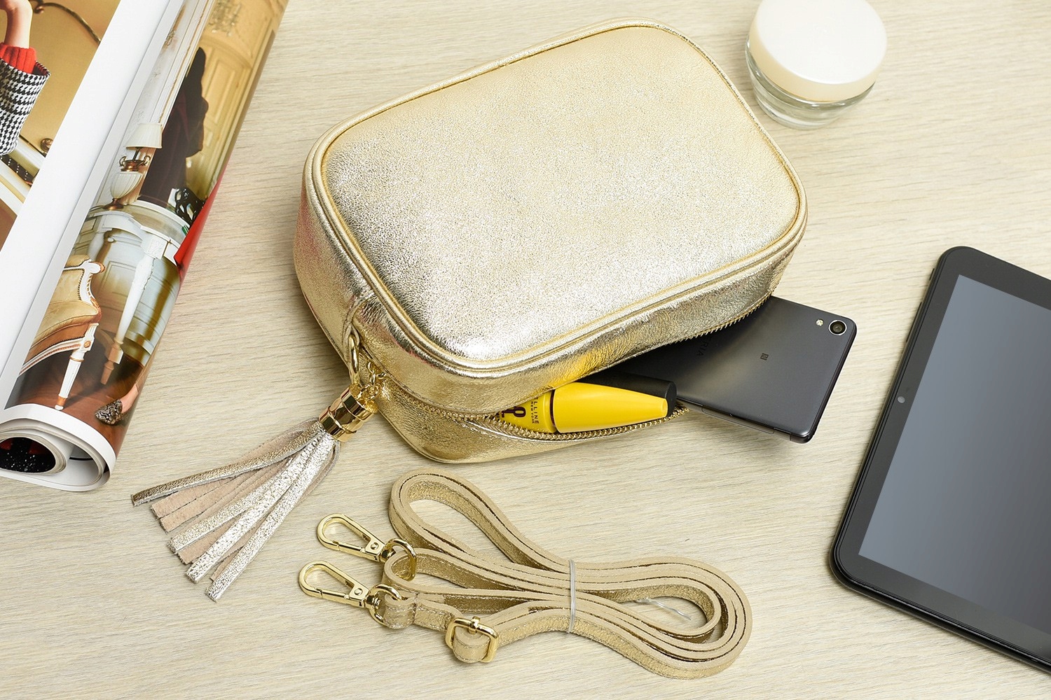 - Pomieści wszystkie najpotrzebniejsze podręczne rzeczy takie, jak portfel, telefon oraz inne drobiazgi