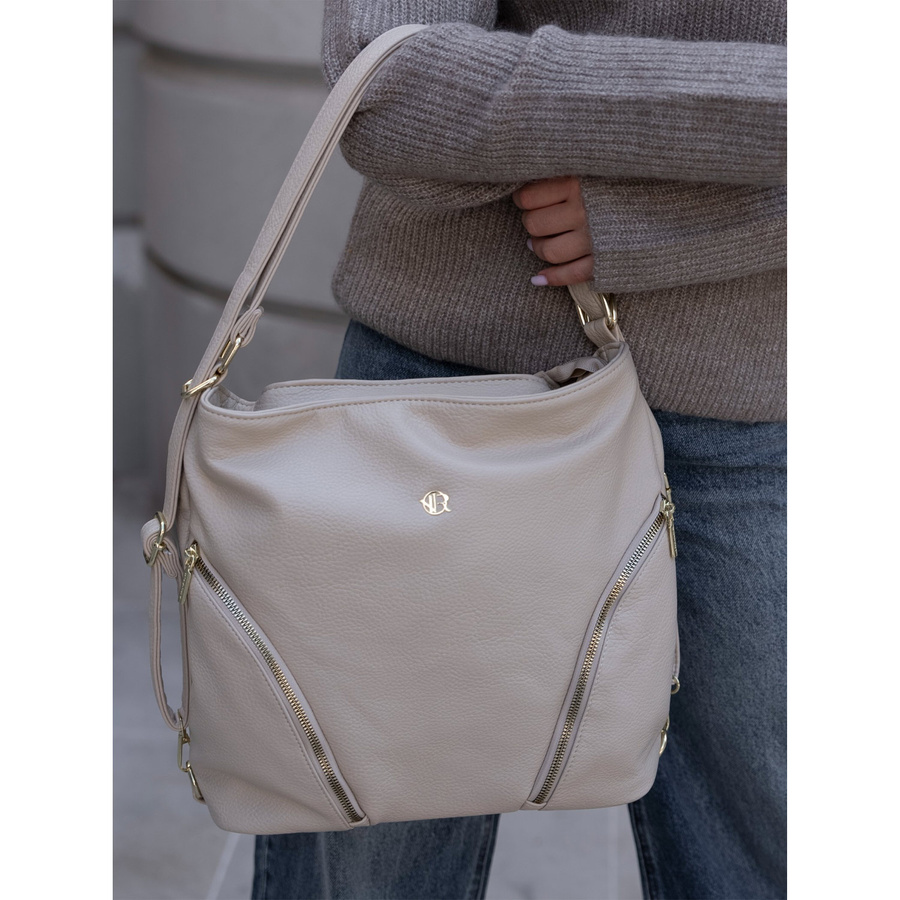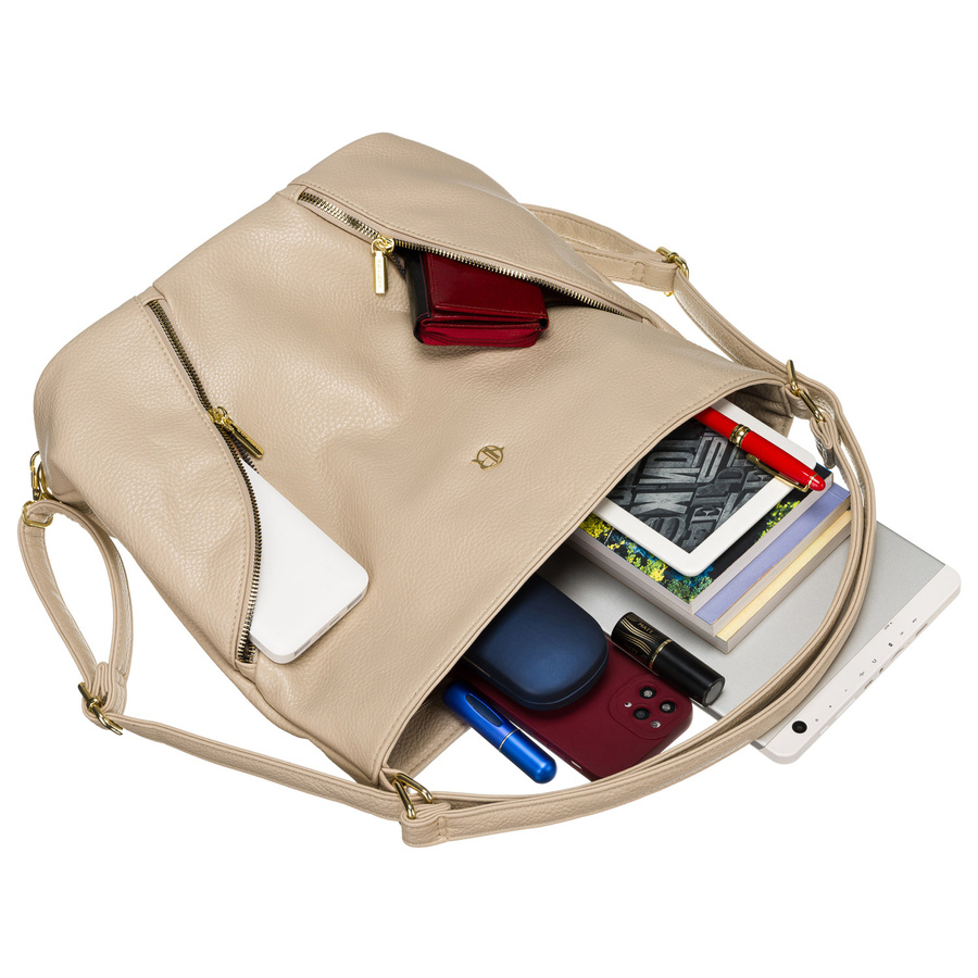 Możesz nosić ją zarówno w dłoni jak i na ramieniu, a po przepięciu pasków, powstanie praktyczny miejski plecaczek.