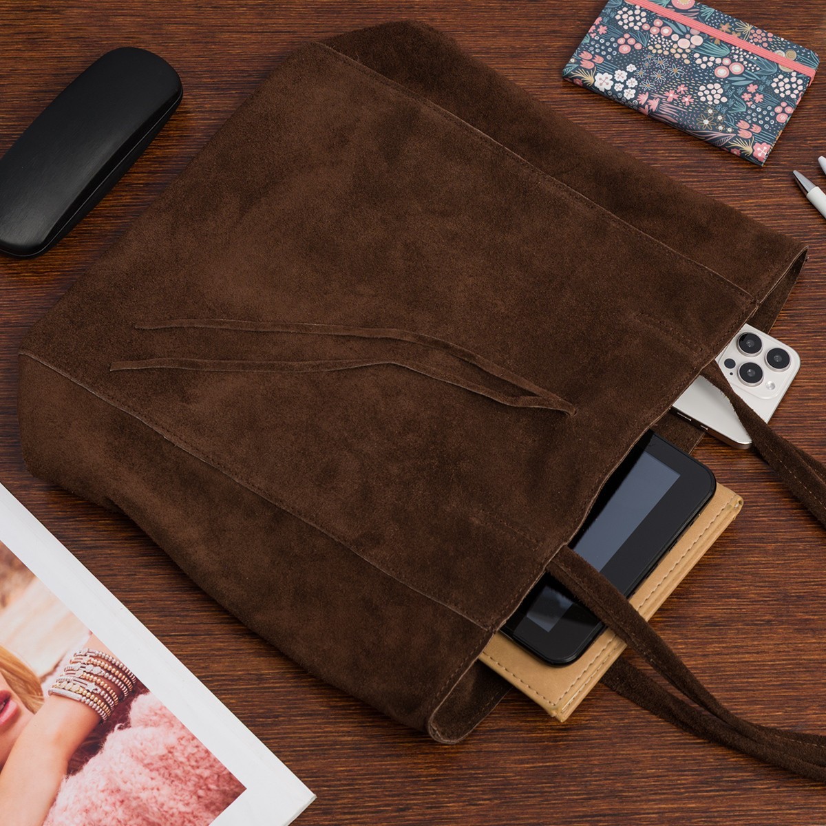 Torebka zamszowa w modnym kolorze czekoladowym.