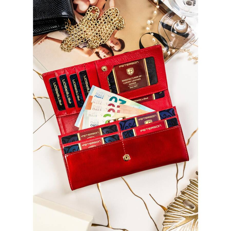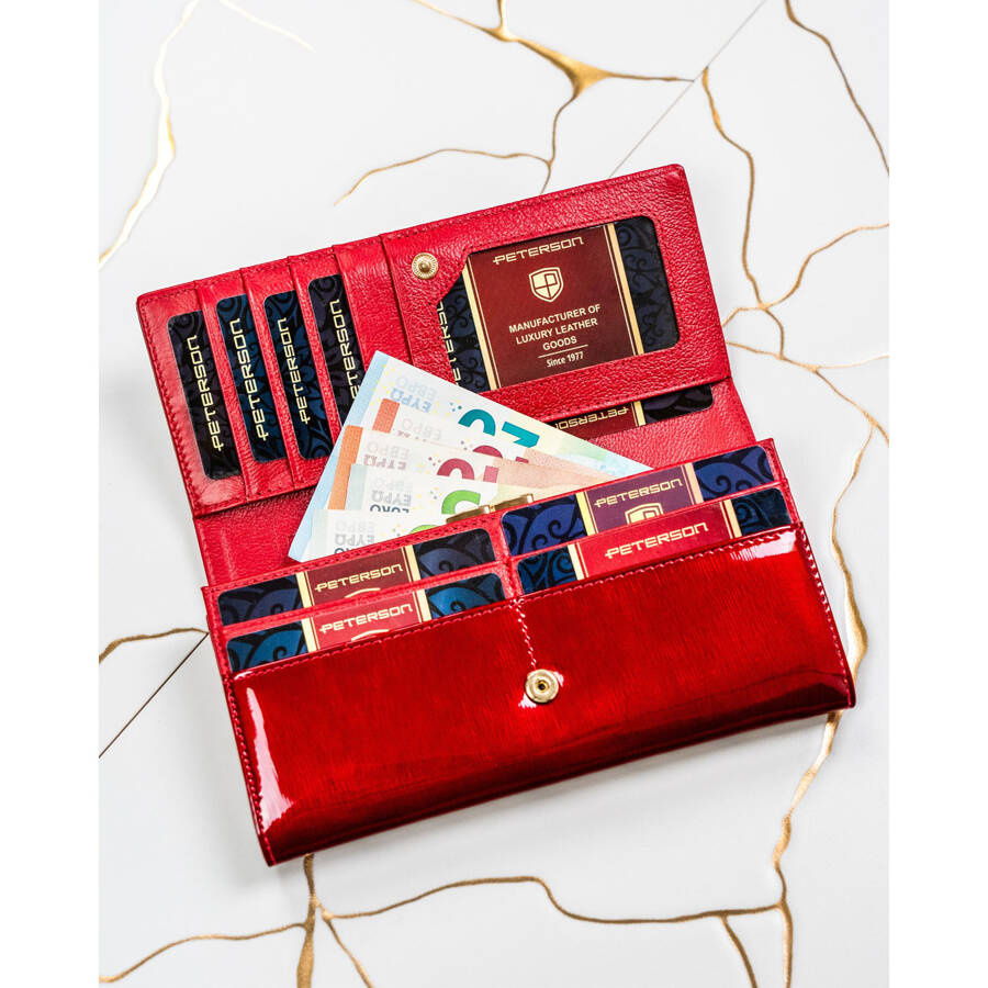 Damski portfel czerwony z zamknięciem na zatrzask - PetersonDamski portfel czerwony z zamknięciem na zatrzask – Peterson