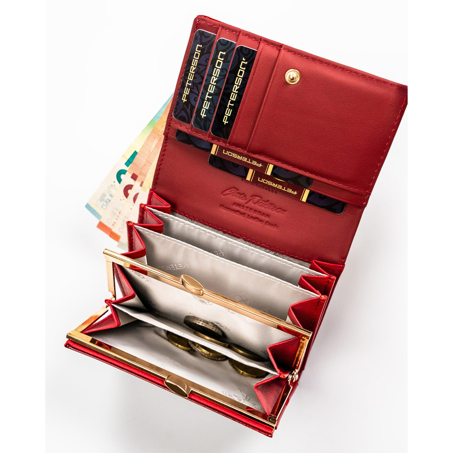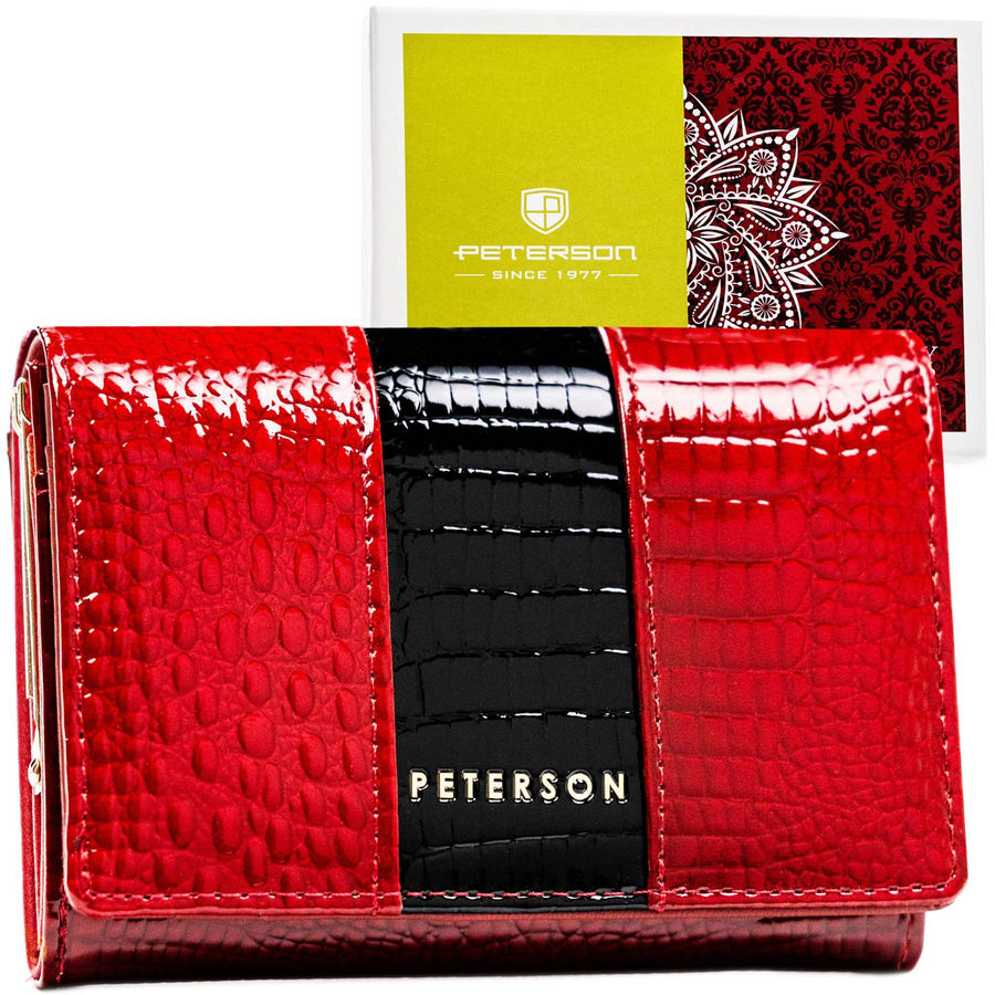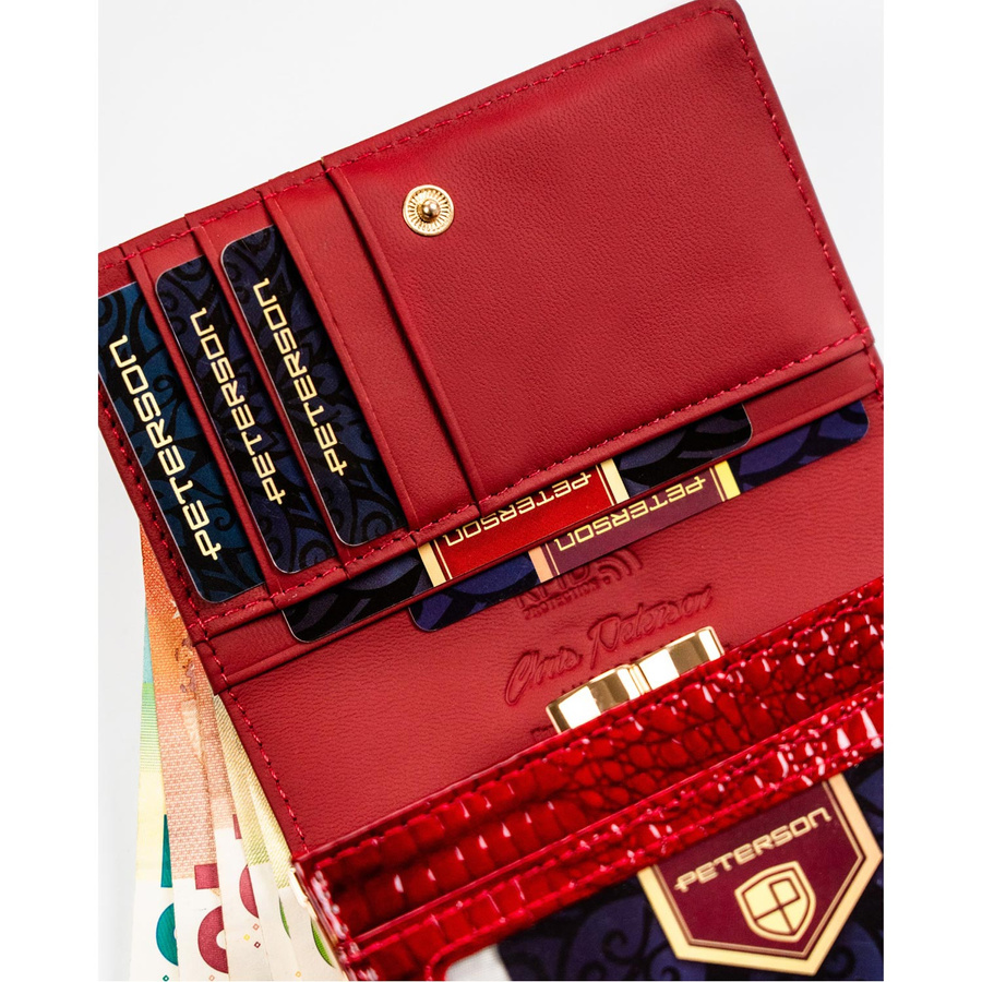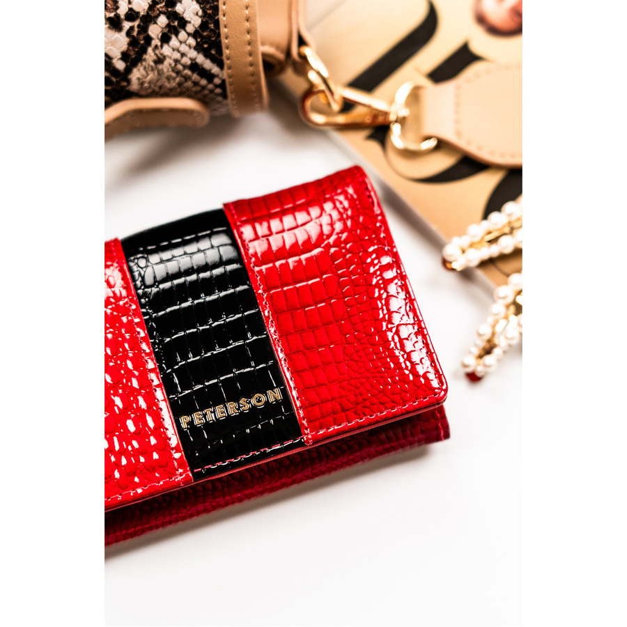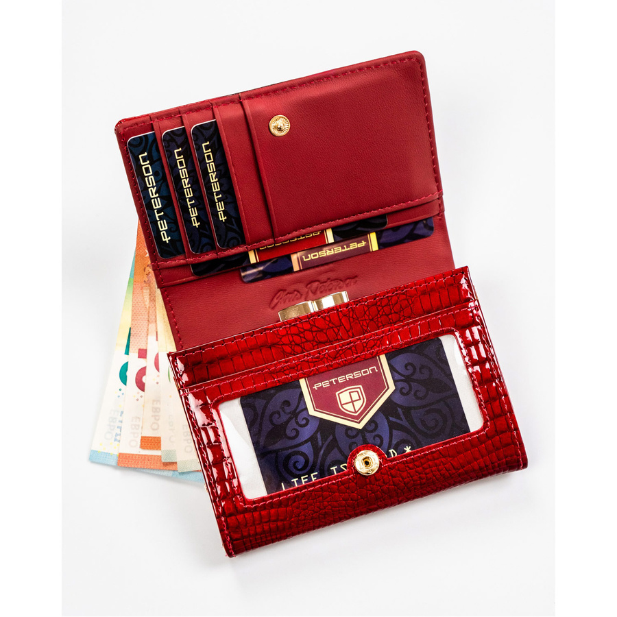 Damski portfel na zatrzask wykonany ze skóry naturalnej z tłoczeniem na wzór skóry krokodyla - PetersonDamski portfel na zatrzask wykonany ze skóry naturalnej z tłoczeniem na wzór skóry krokodyla – Peterson
