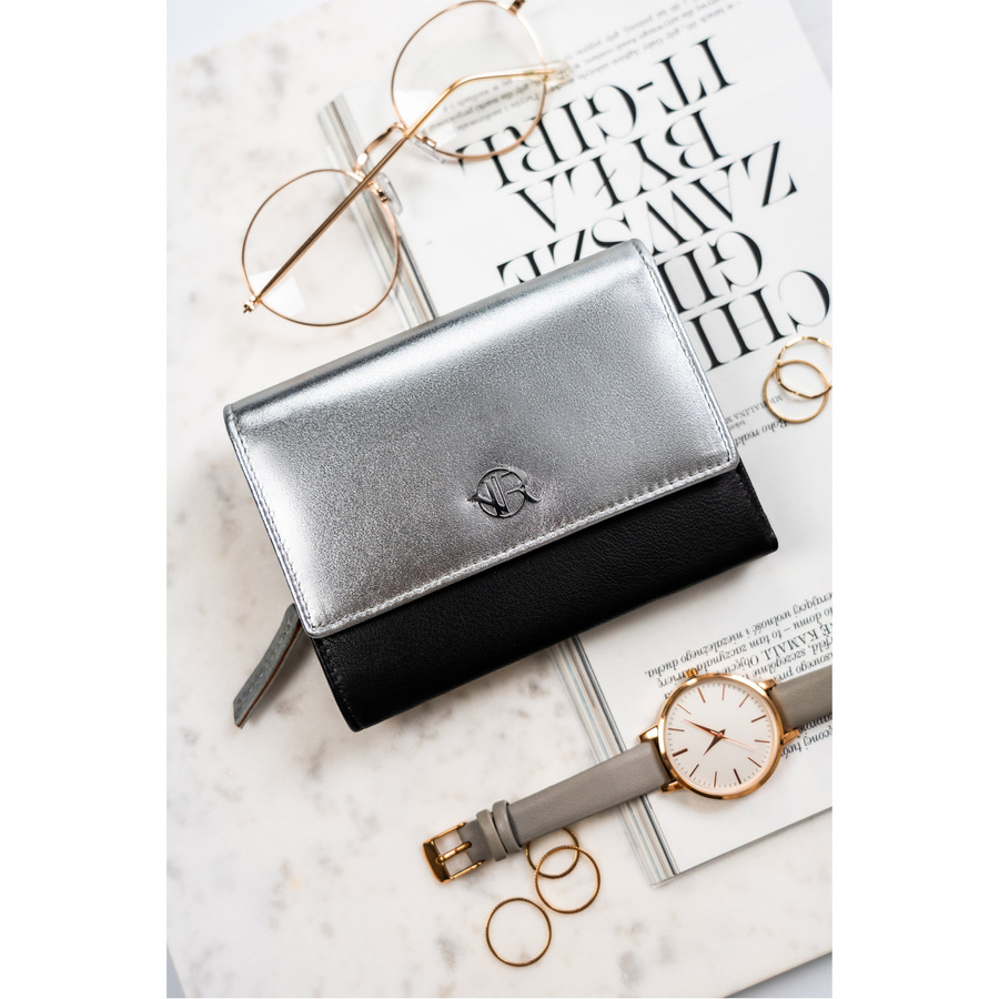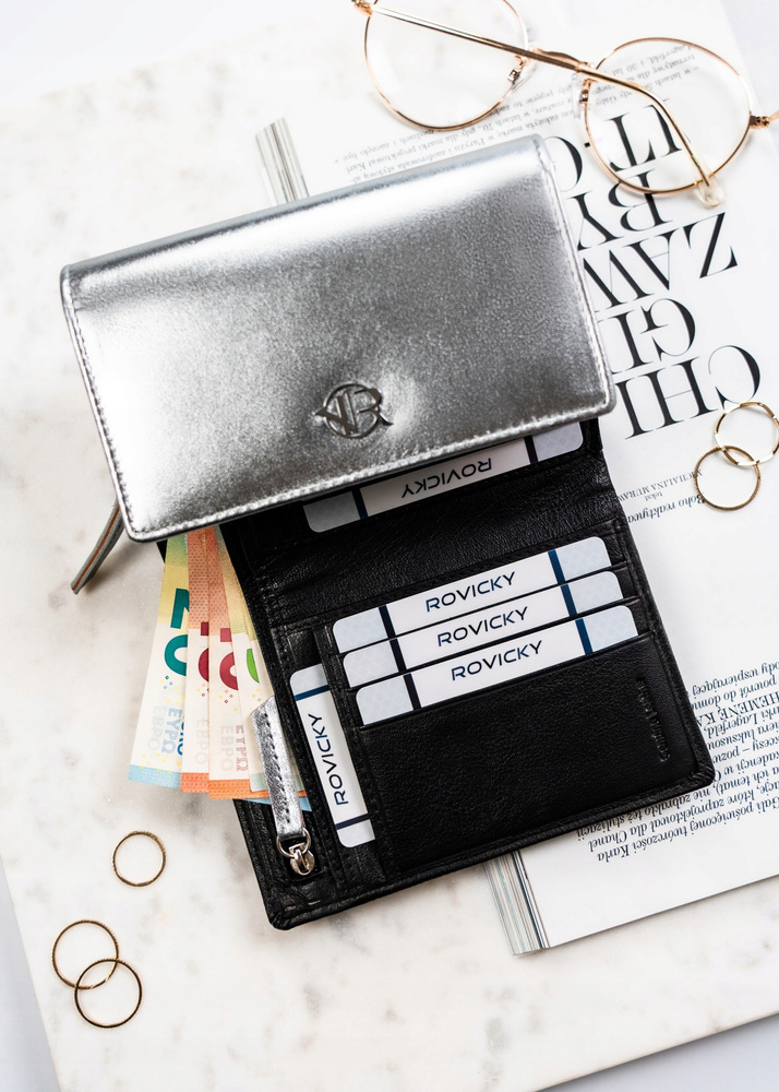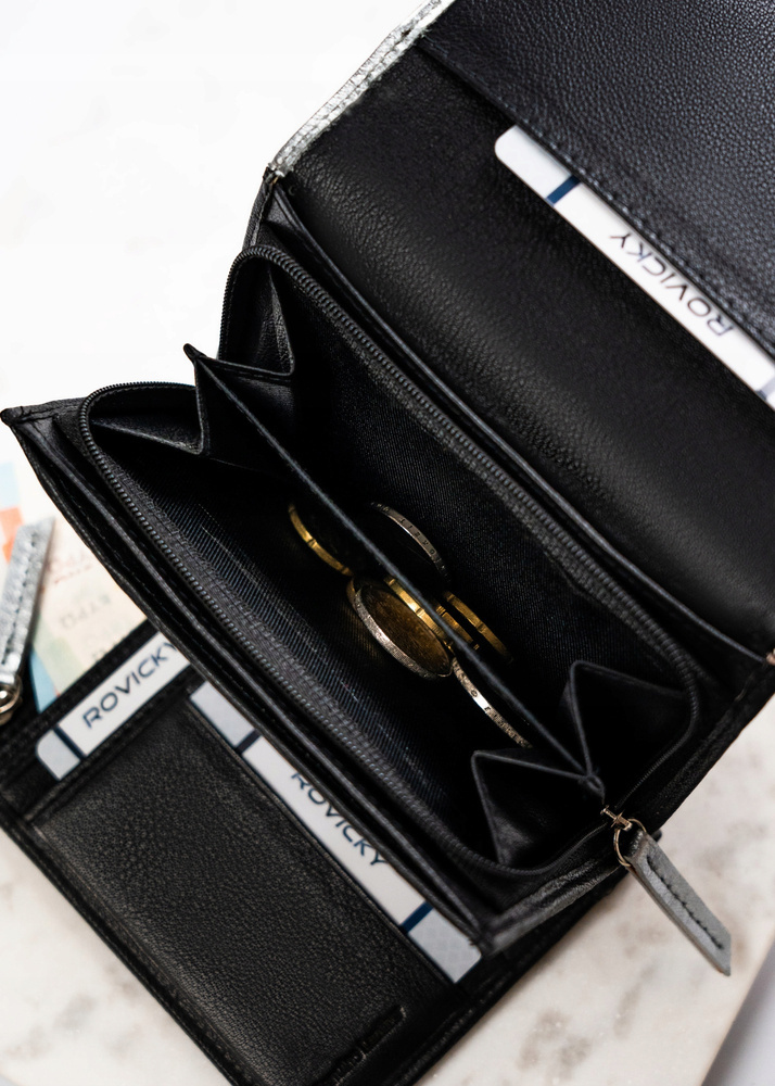 Damski portfel ze skóry naturalnej na zatrzask – Rovicky
