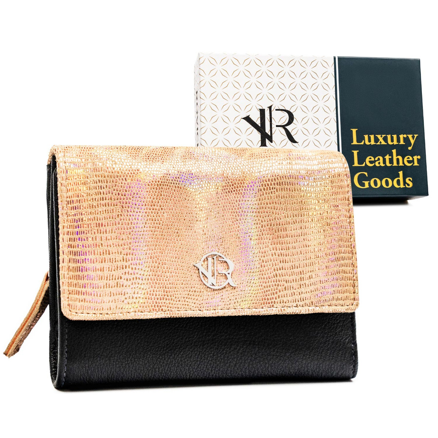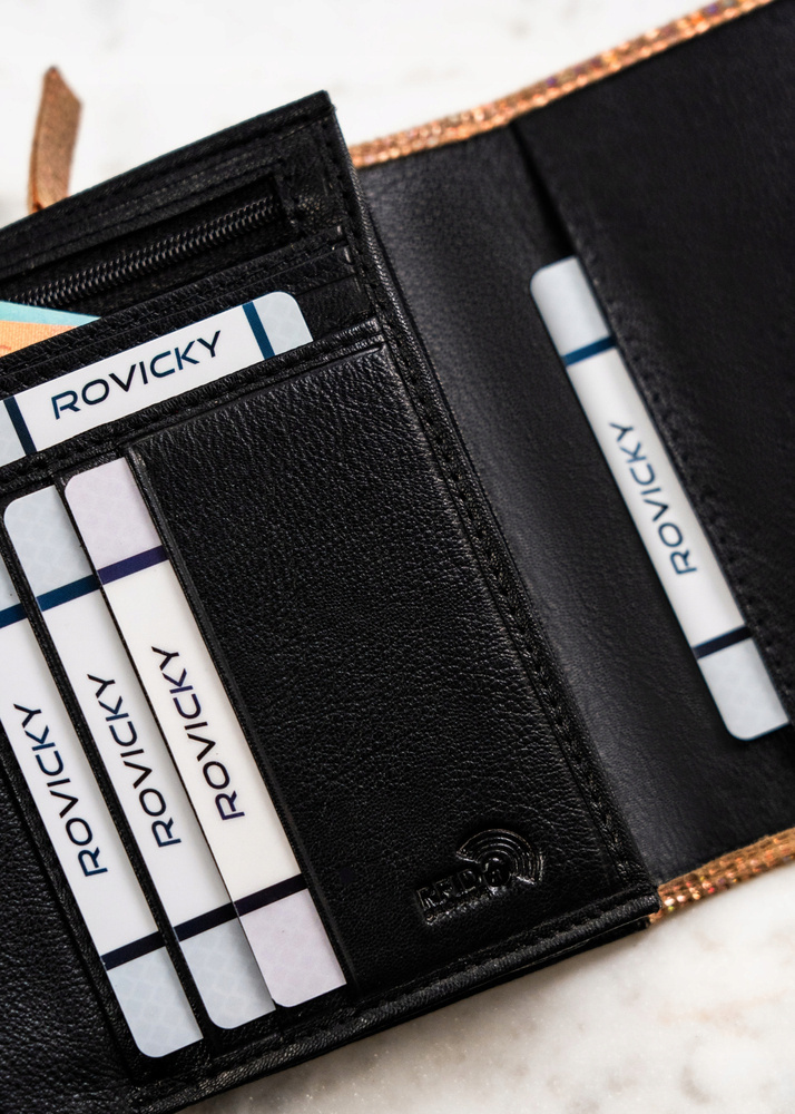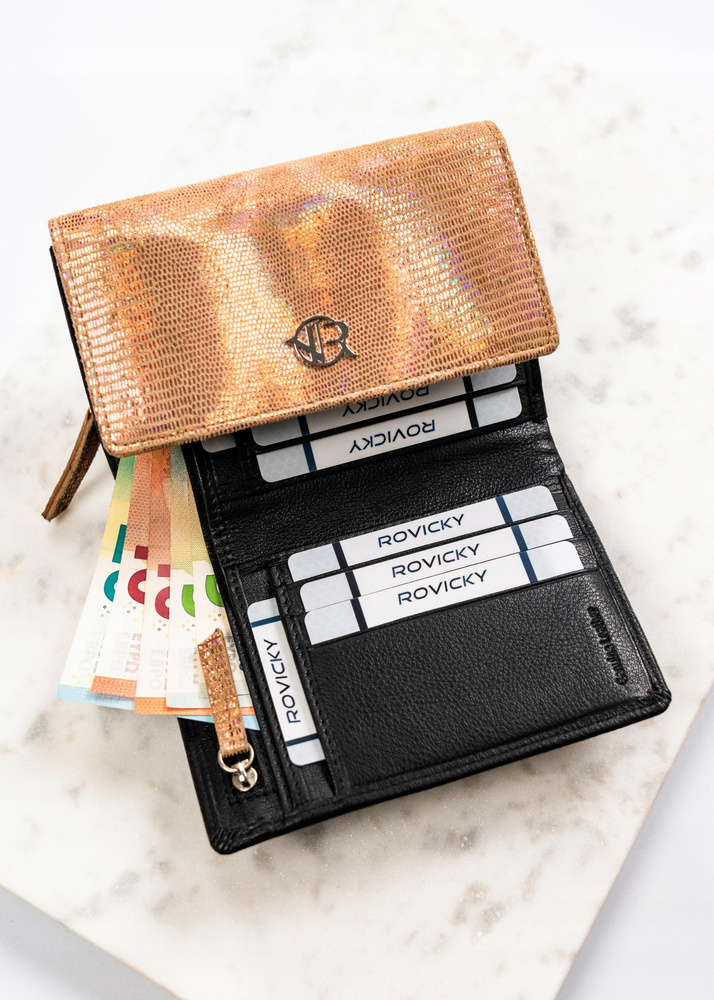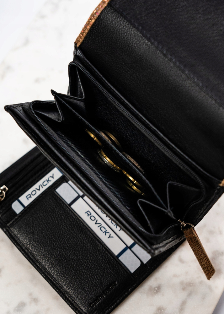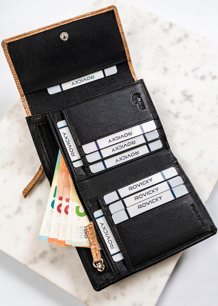 Damski portfel ze skóry naturalnej na zatrzask – Rovicky