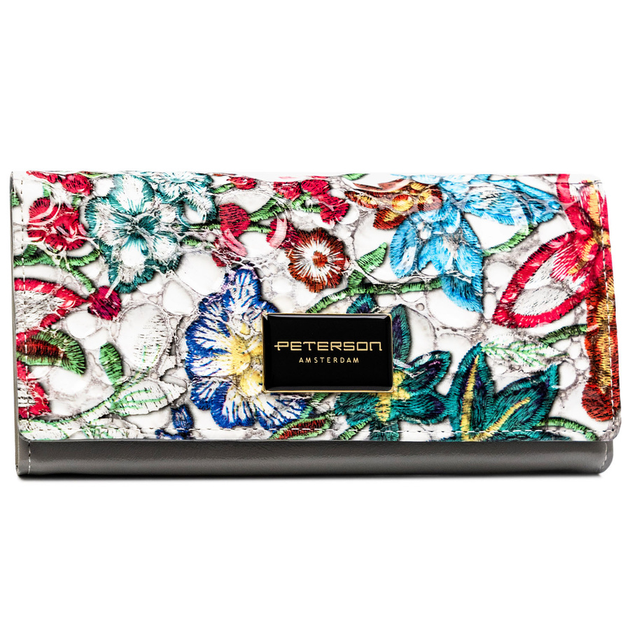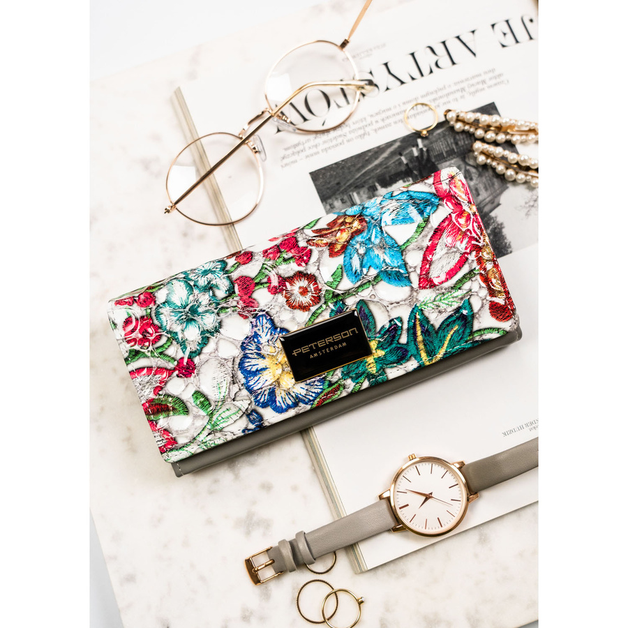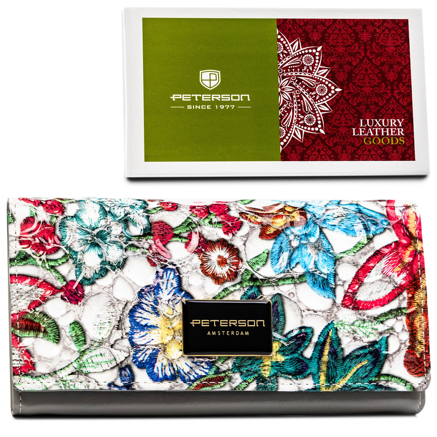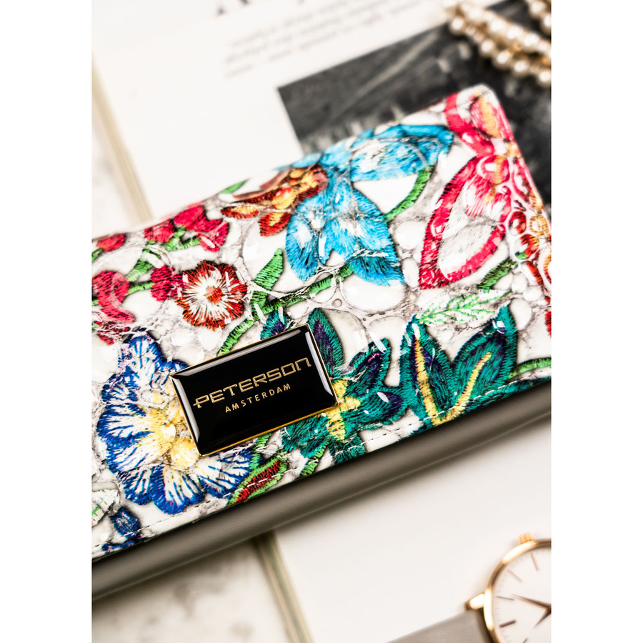 Damski portfel ze skóry naturalnej w kwiatowy wzór – Peterson