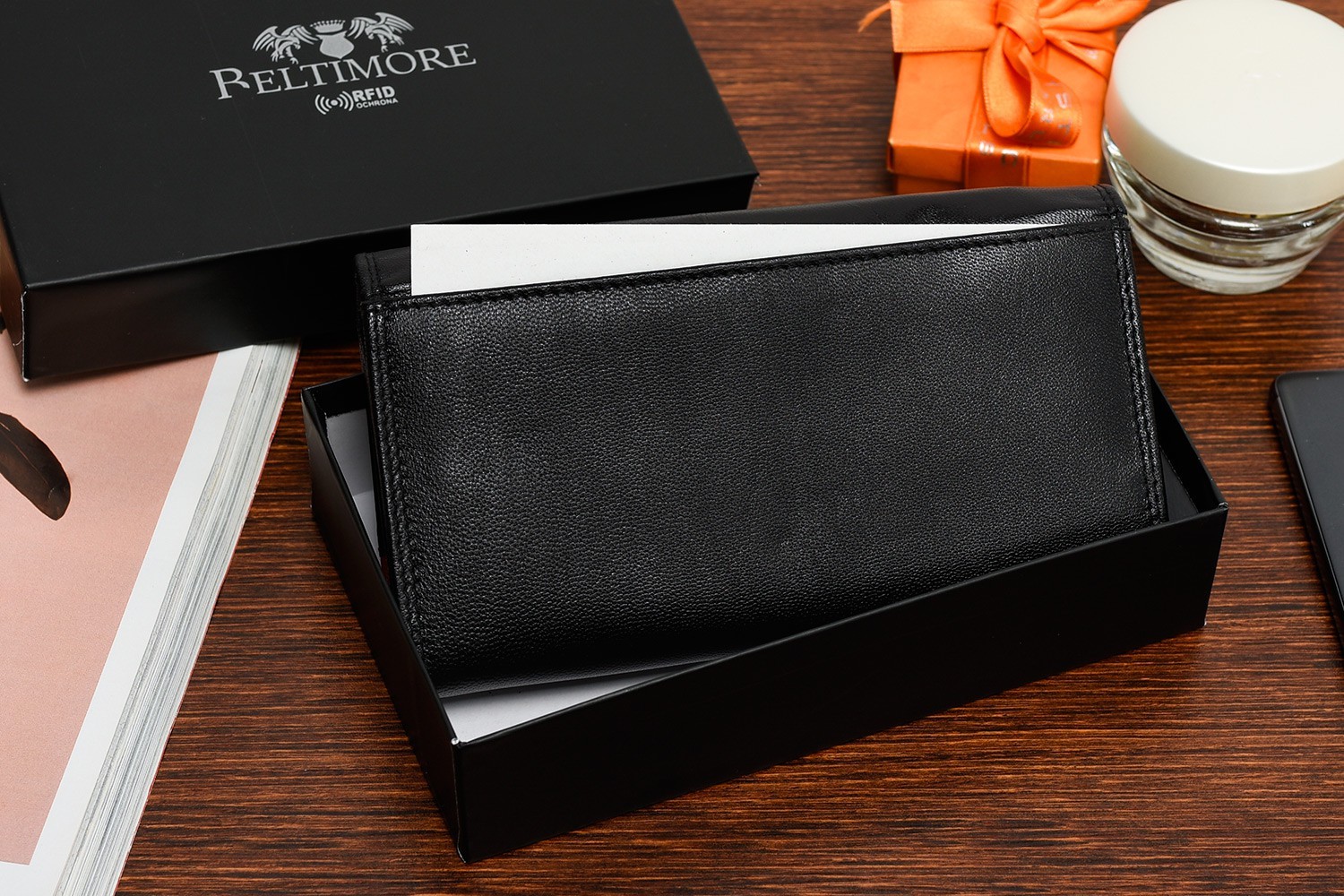 Damski skórzany portfel duży poziomy retro RFiD czarny BELTIMORE 043