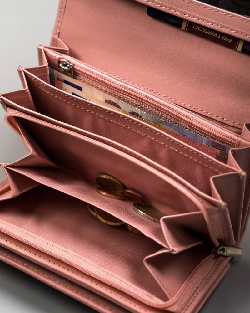 - na banknoty wydzielone są 4 przegródki. Jedna większa, pozostałe mniejsze.