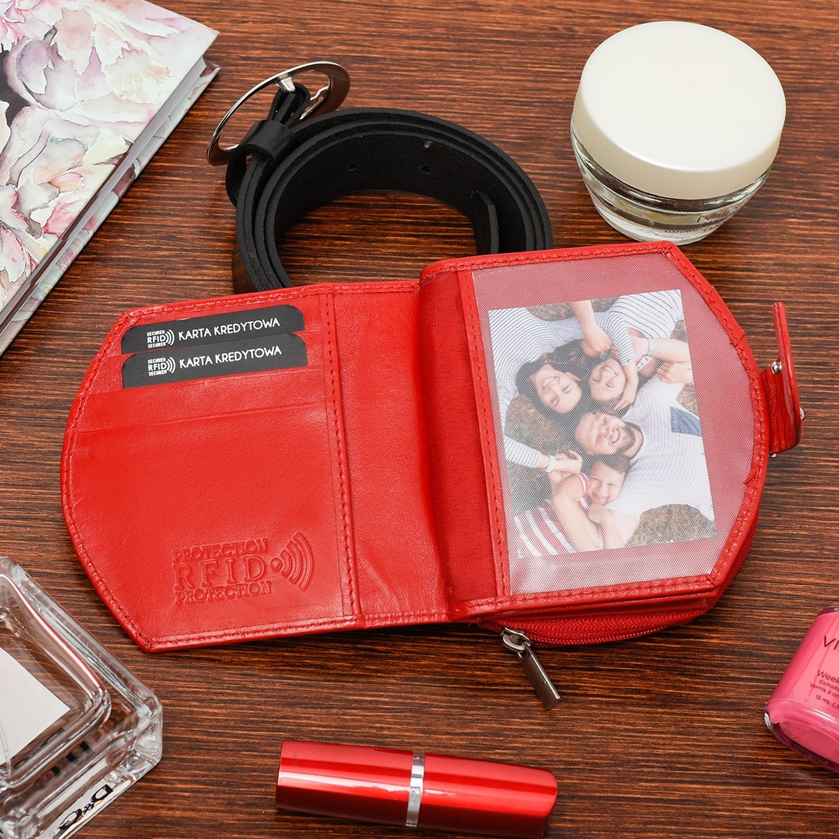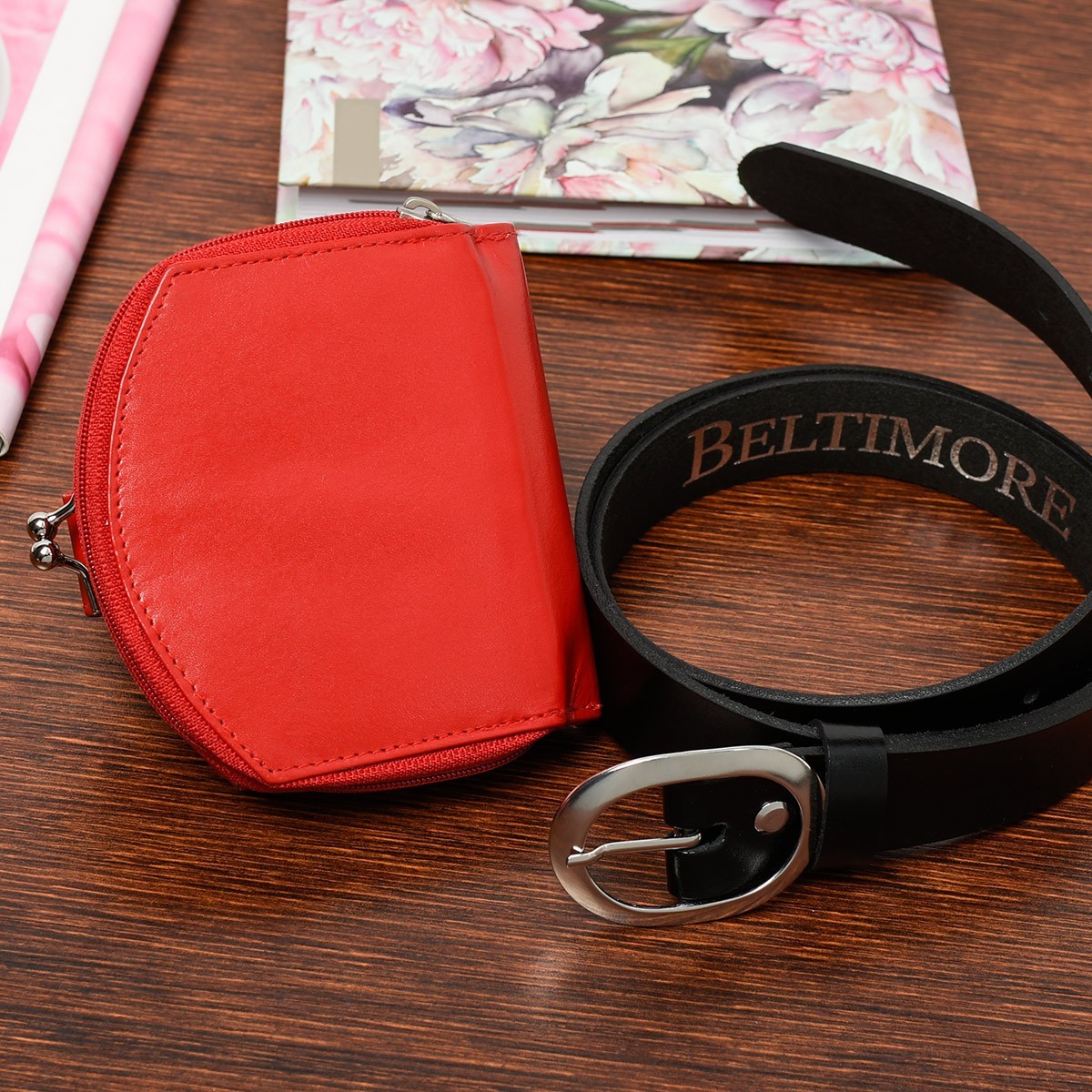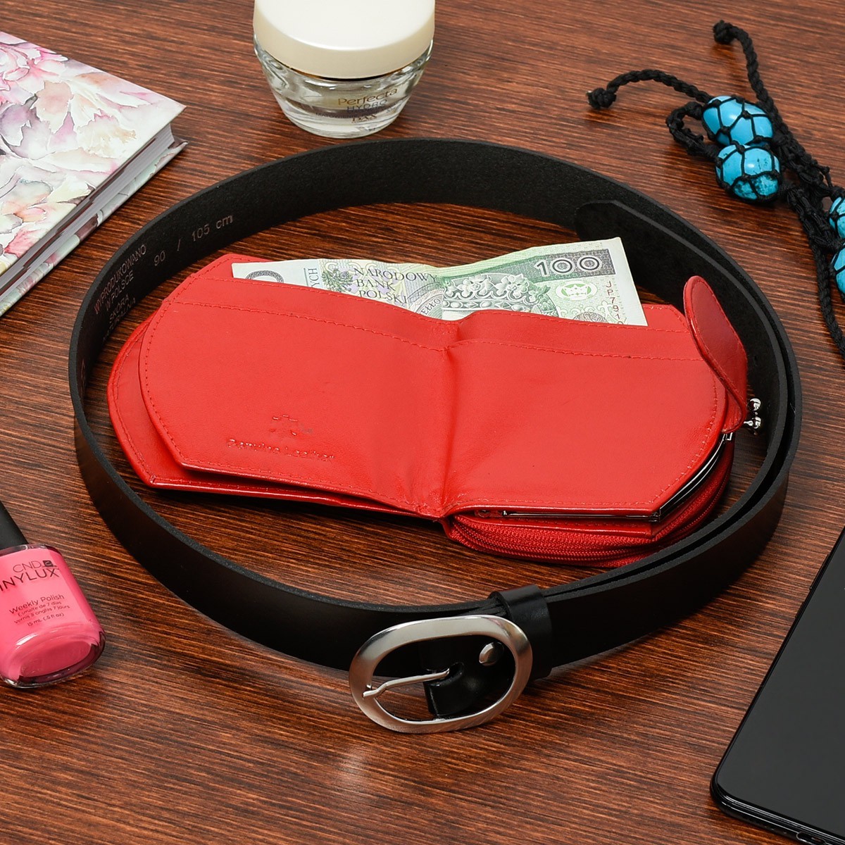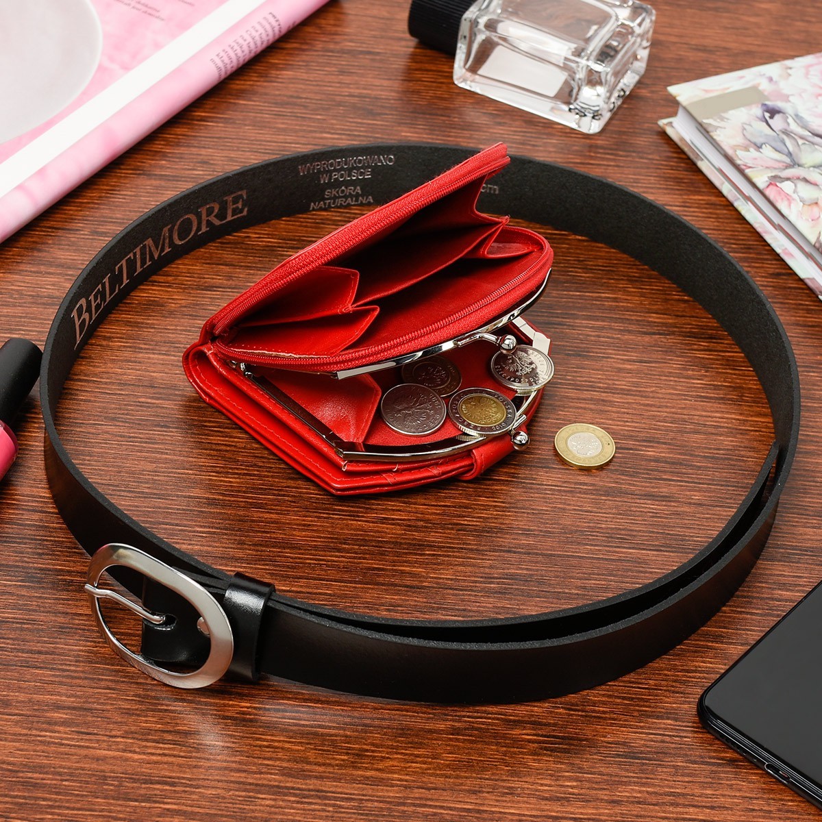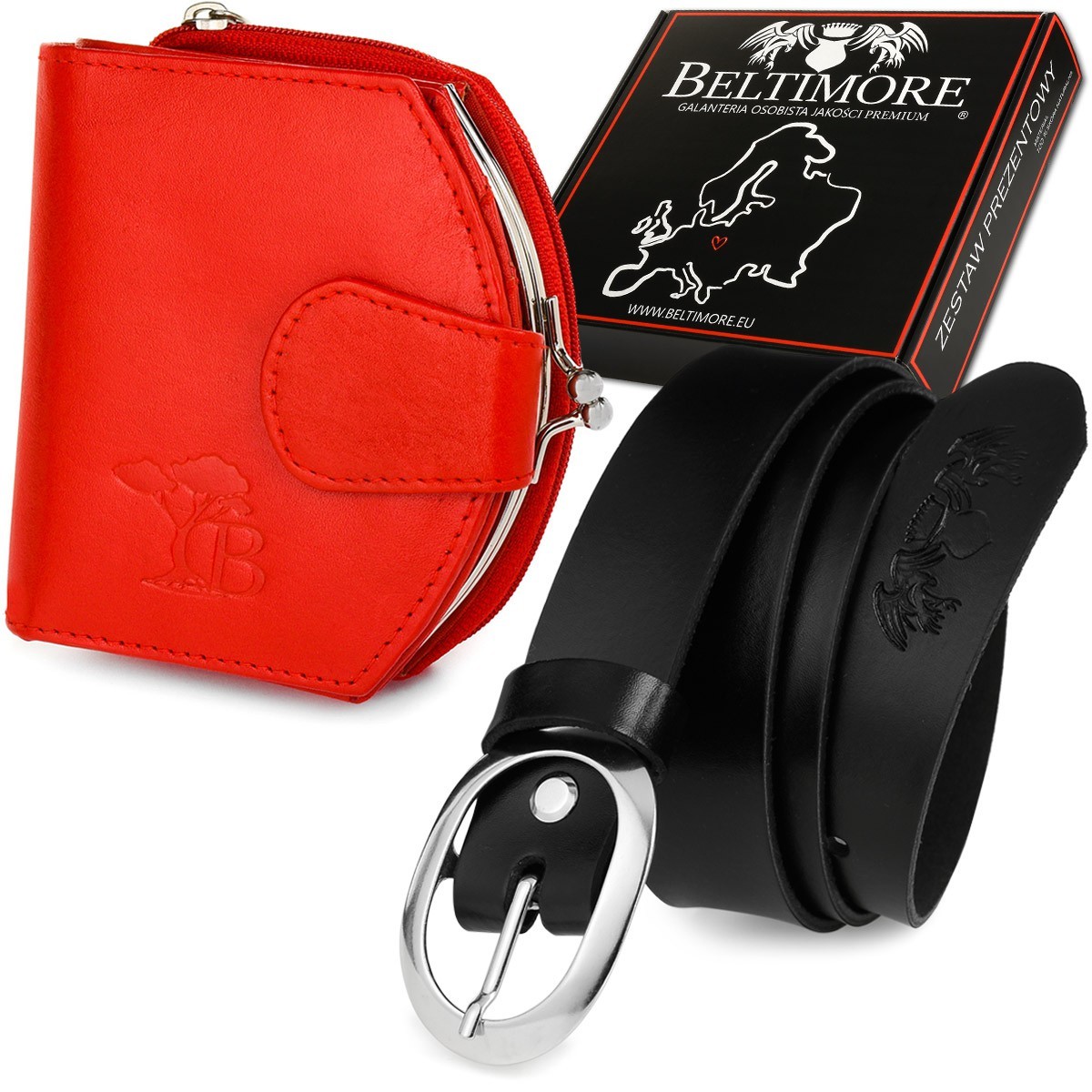 Ekskluzywny, wysokiej jakości, zestaw damski składający się ze skórzanego portfela oraz paska marki Beltimore®