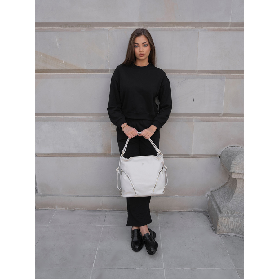 Możesz nosić ją zarówno w dłoni jak i na ramieniu, a po przepięciu pasków, powstanie praktyczny miejski plecaczek.