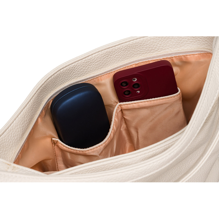 Duża torebka damska z kieszonkami w kolorze beżowym – Rovicky