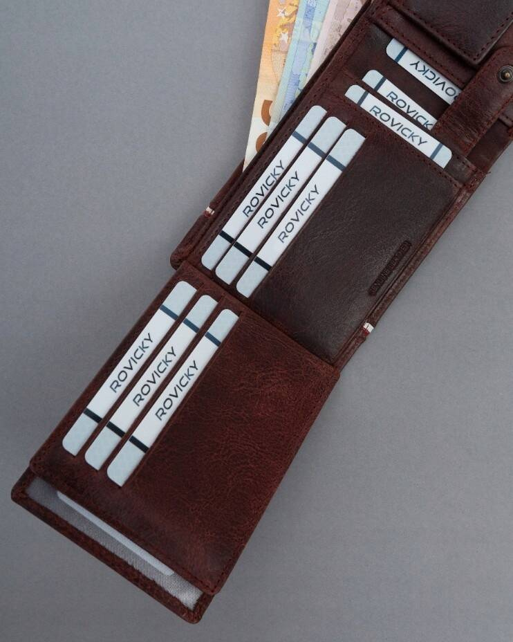 • 2 szerokie przegródki na banknoty, które pozwalają przechowywać sporą ilość gotówki. Ich ilość pozwala na wygodną organizację pieniędzy.