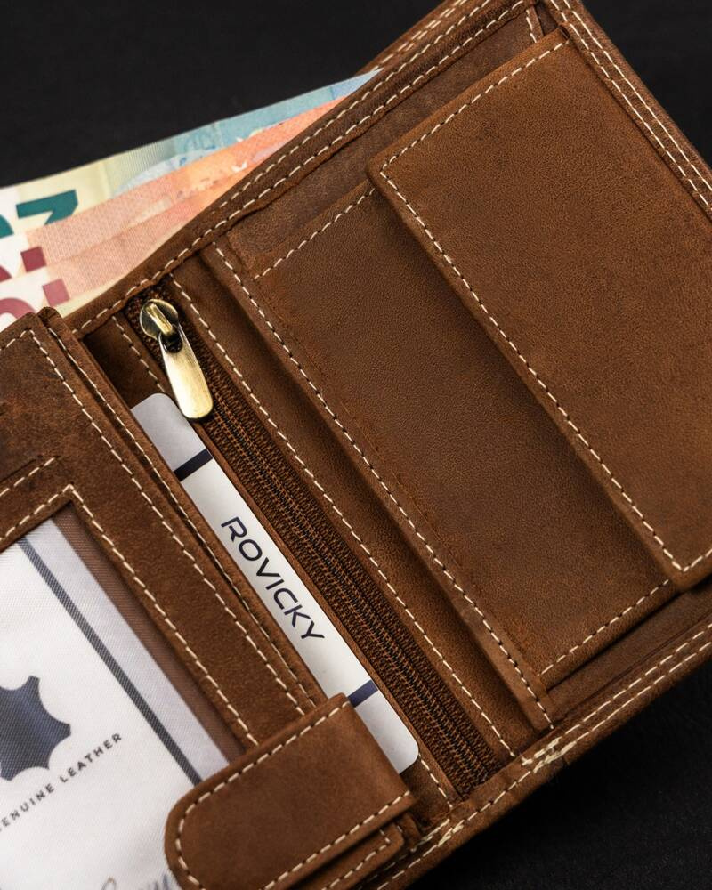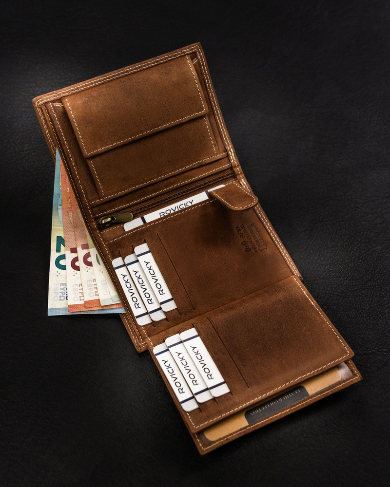Posiada rozbudowane wnętrze – będzie idealnym wyborem właśniedla Ciebie idealny, jeżeli na co dzień nosisz dokumenty w dużym formacie jak np. dowód rejestracyjny. Ponadto zmieścisz w nim pokaźne ilości kart oraz gotówki.