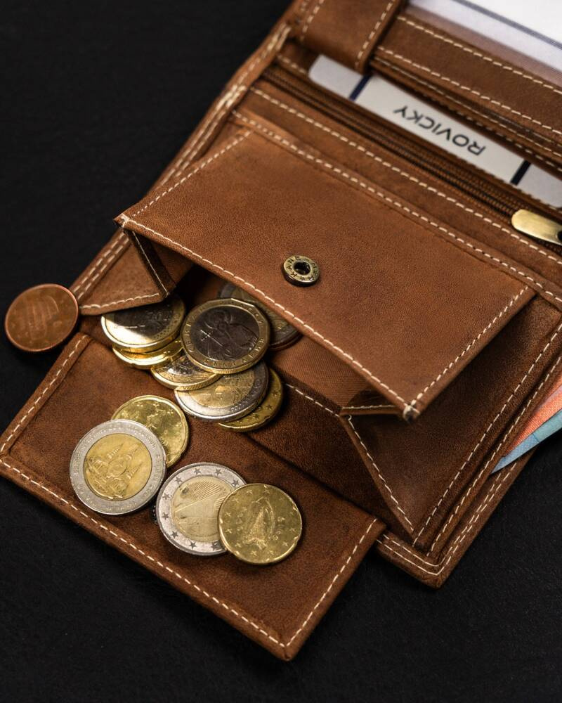 W kieszeniach na banknoty i monety zmieścisz satysfakcjonującą ilość gotówki.