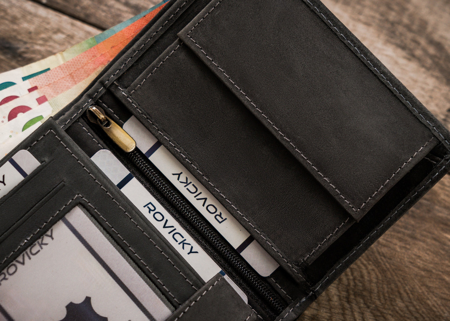Posiada rozbudowane wnętrze – będzie idealnym wyborem właśniedla Ciebie idealny, jeżeli na co dzień nosisz dokumenty w dużym formacie jak np. dowód rejestracyjny. Ponadto zmieścisz w nim pokaźne ilości kart oraz gotówki.