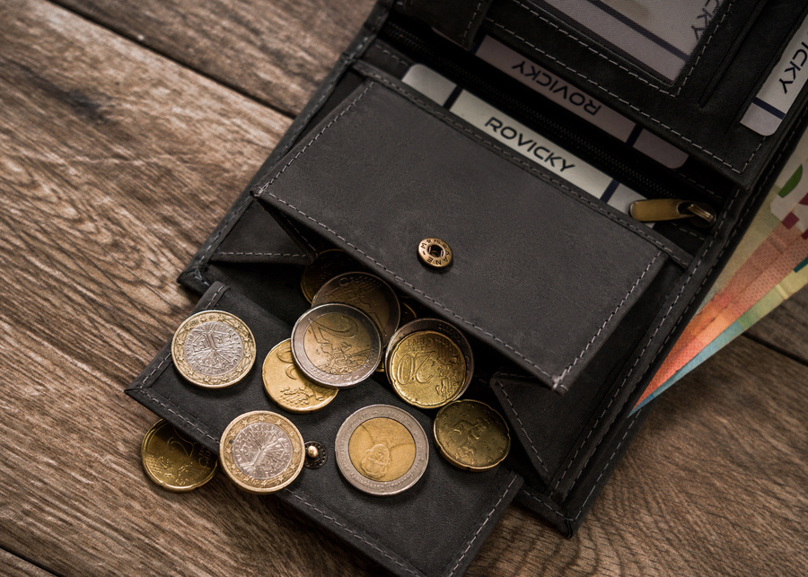 W kieszeniach na banknoty i monety zmieścisz satysfakcjonującą ilość gotówki.