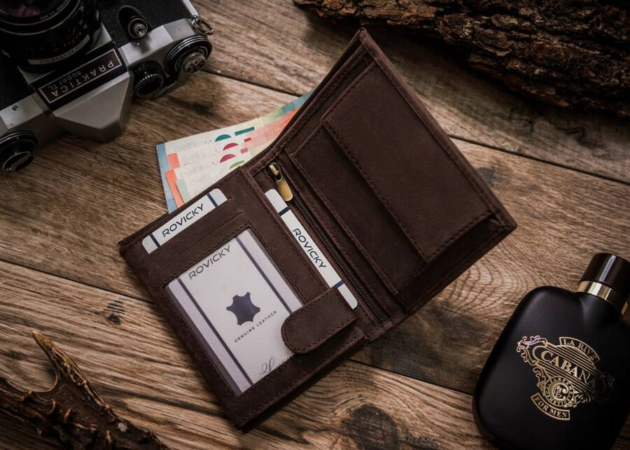 Posiada rozbudowane wnętrze – będzie idealnym wyborem właśniedla Ciebie idealny, jeżeli na co dzień nosisz dokumenty w dużym formacie jak np. dowód rejestracyjny. Ponadto zmieścisz w nim pokaźne ilości kart oraz gotówki.