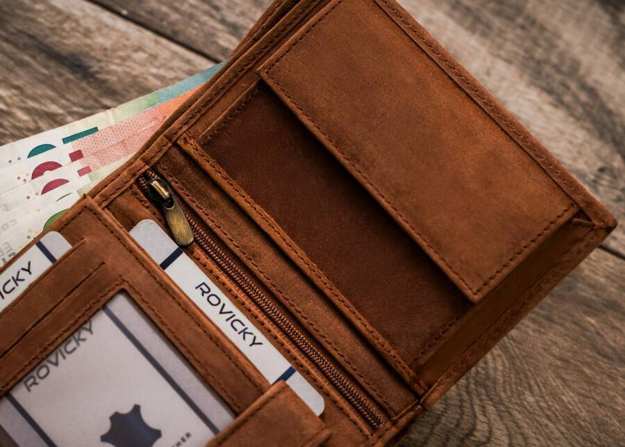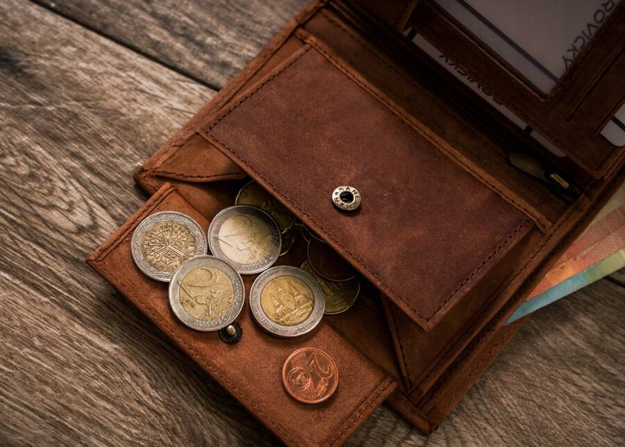 W kieszeniach na banknoty i monety zmieścisz satysfakcjonującą ilość gotówki.