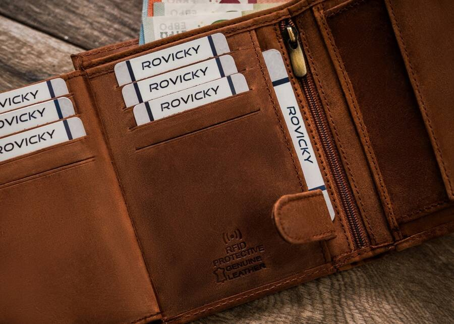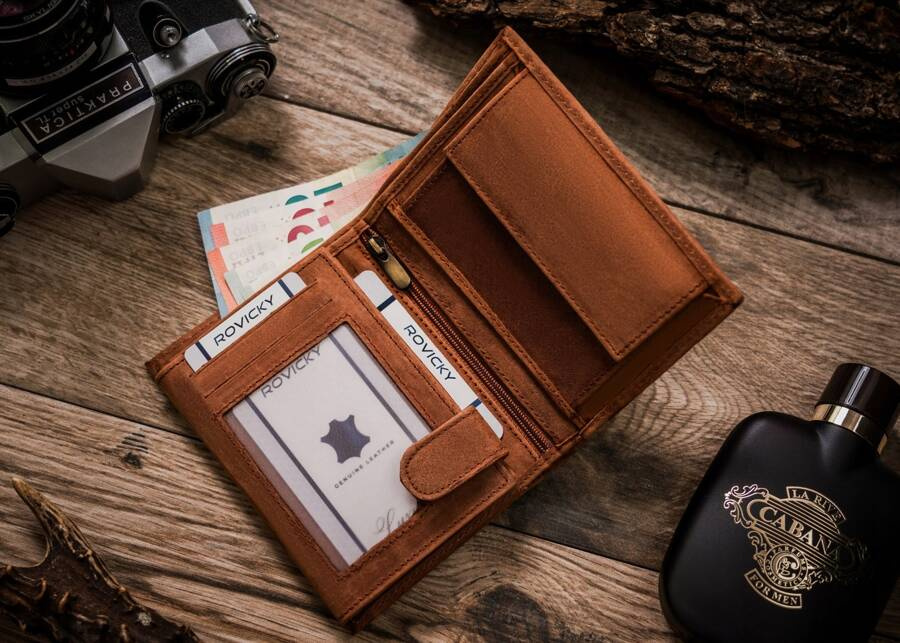 Posiada rozbudowane wnętrze – będzie idealnym wyborem właśniedla Ciebie idealny, jeżeli na co dzień nosisz dokumenty w dużym formacie jak np. dowód rejestracyjny. Ponadto zmieścisz w nim pokaźne ilości kart oraz gotówki.