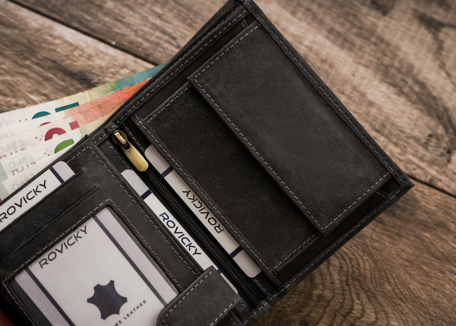 - banknoty schowasz do 2 otwartych, szerokich przegródek, wykończonych materiałową podszewką.