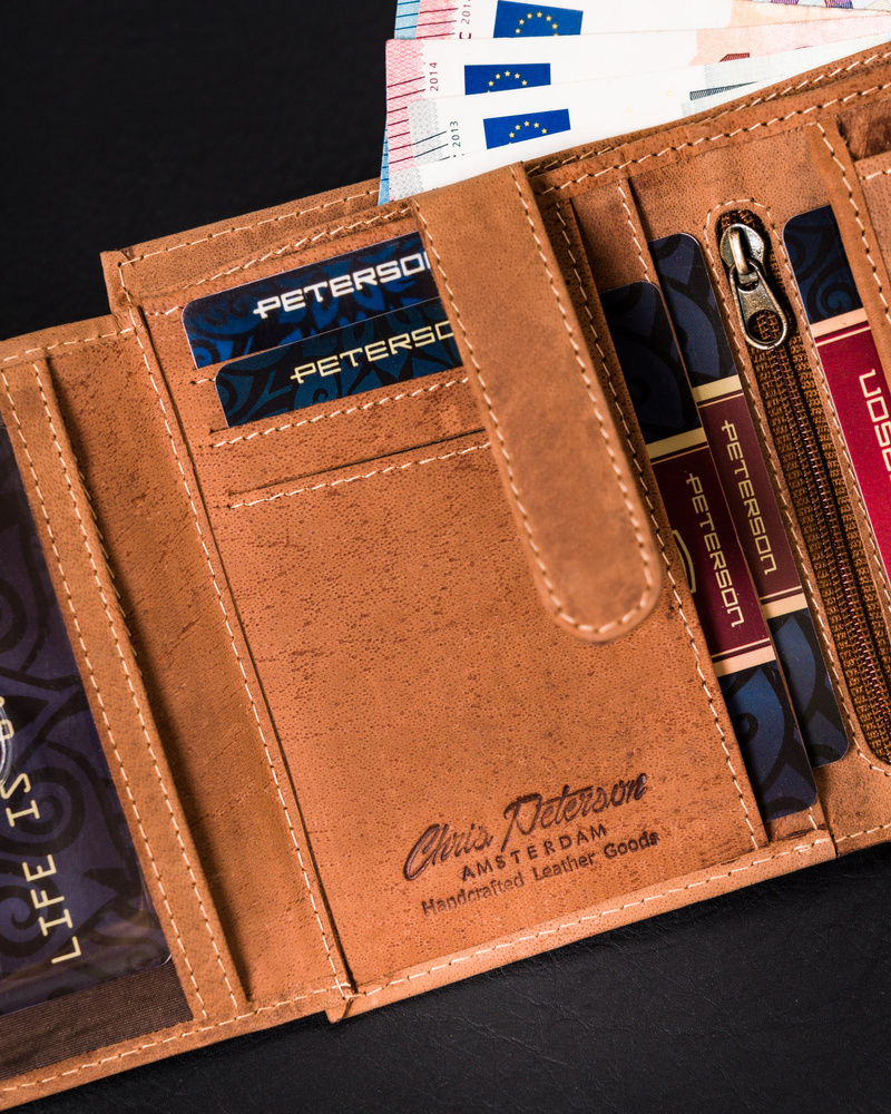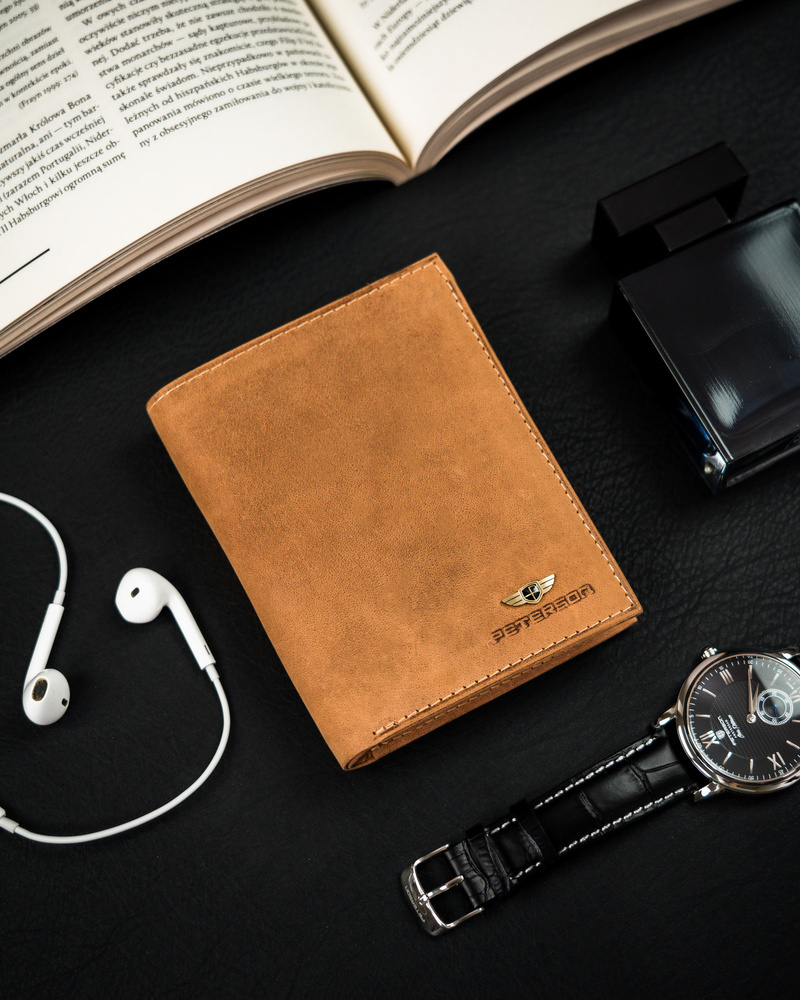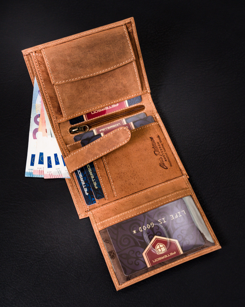 Duży, pionowy portfel męski ze skóry naturalnej — Peterson