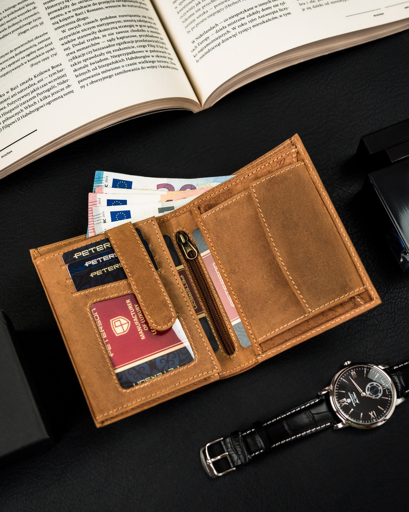 Duży, pionowy portfel męski ze skóry naturalnej – Peterson