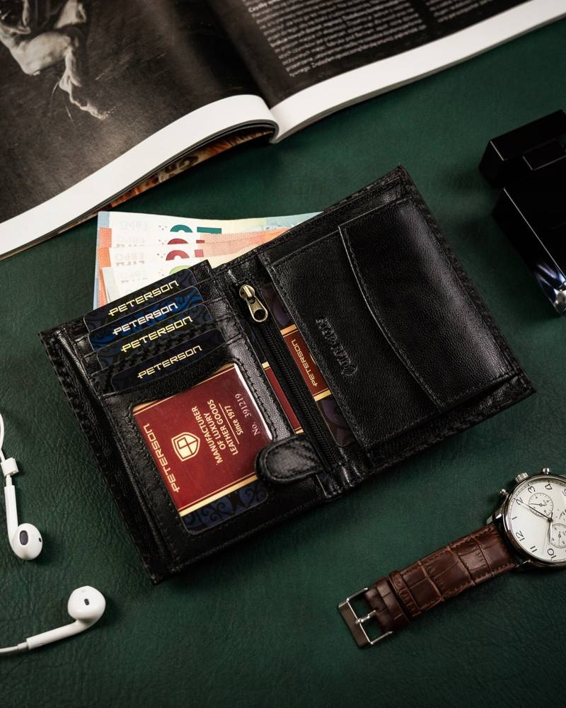 Duży, pionowy portfel męski ze skóry naturalnej — Peterson