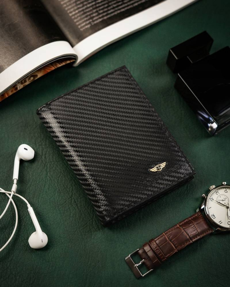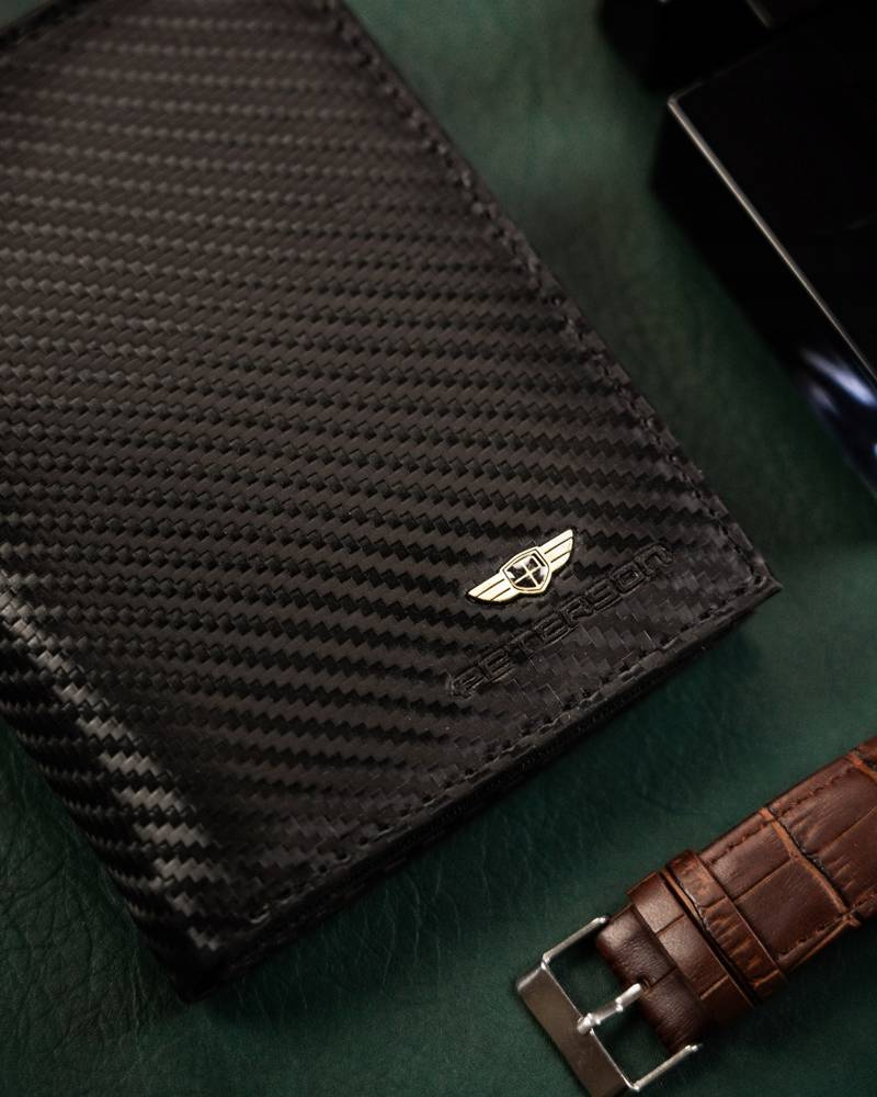 - Najwyższa jakość wykonania | Portfel wykonany został z wysokiej jakości skóry naturalnej powleczonej z zewnątrz warstwą do złudzenia przypominającą włókno węglowe (carbon);