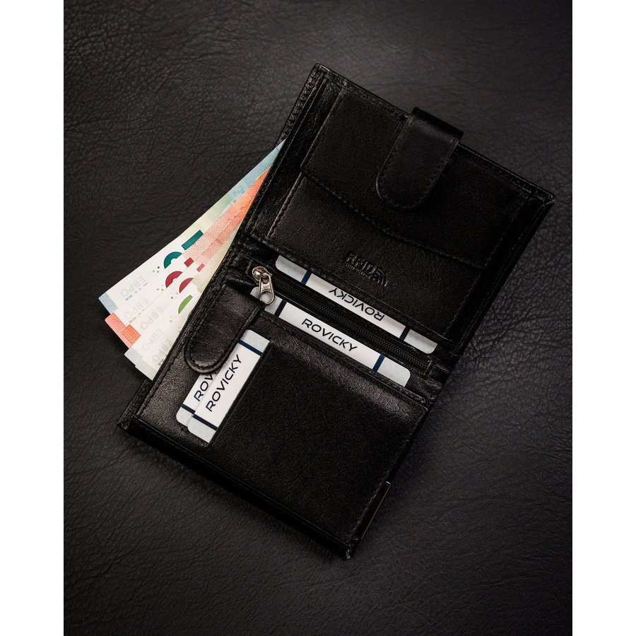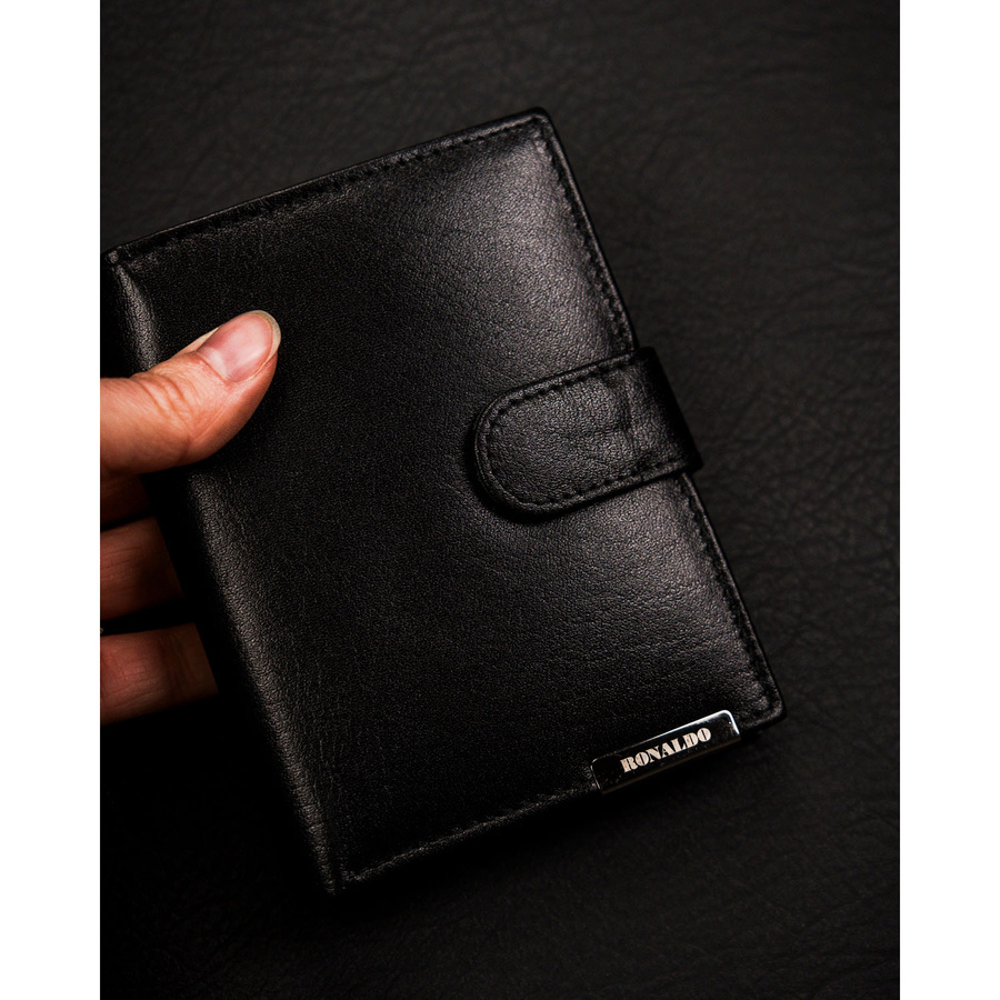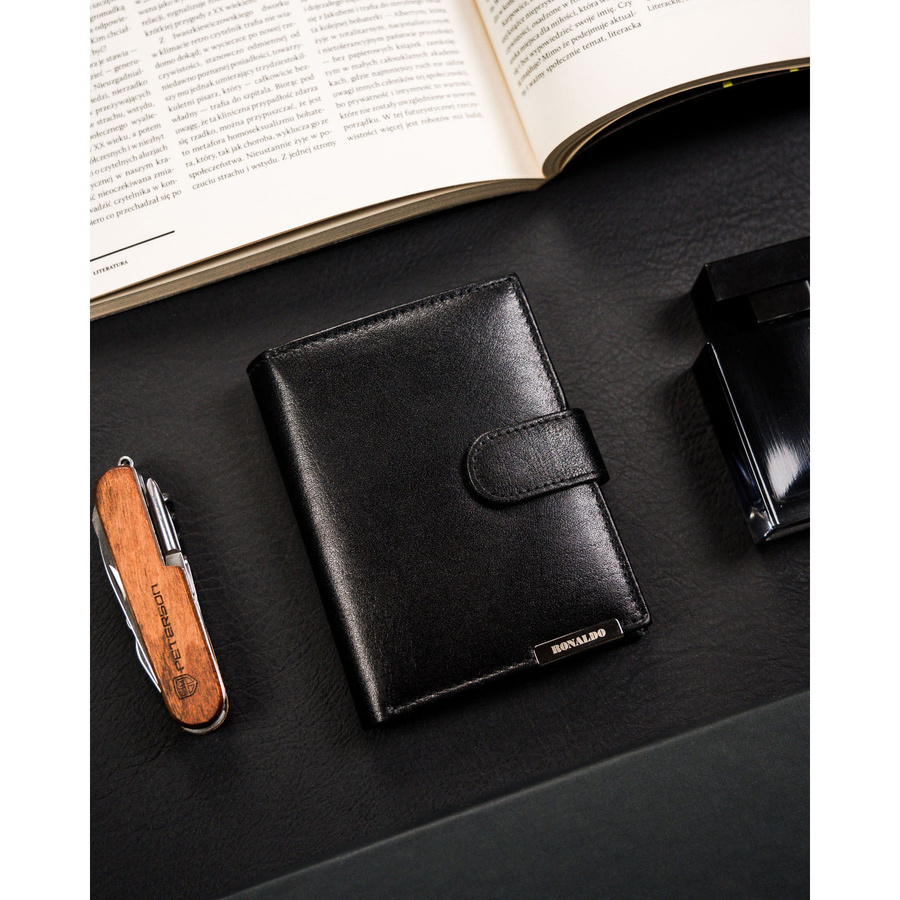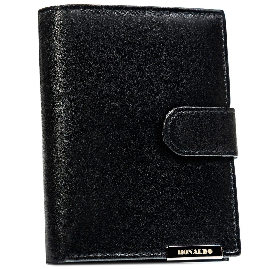 Duży, pionowy portfel męski ze skóry naturalnej w czarnym kolorze zamykany na zatrzask – Ronaldo