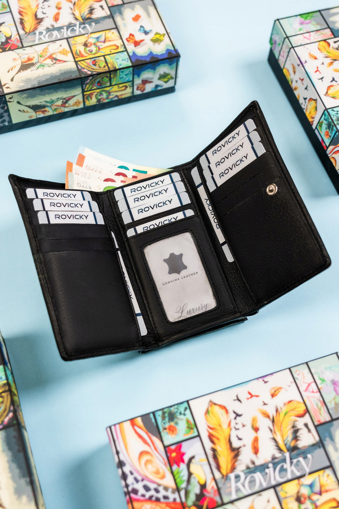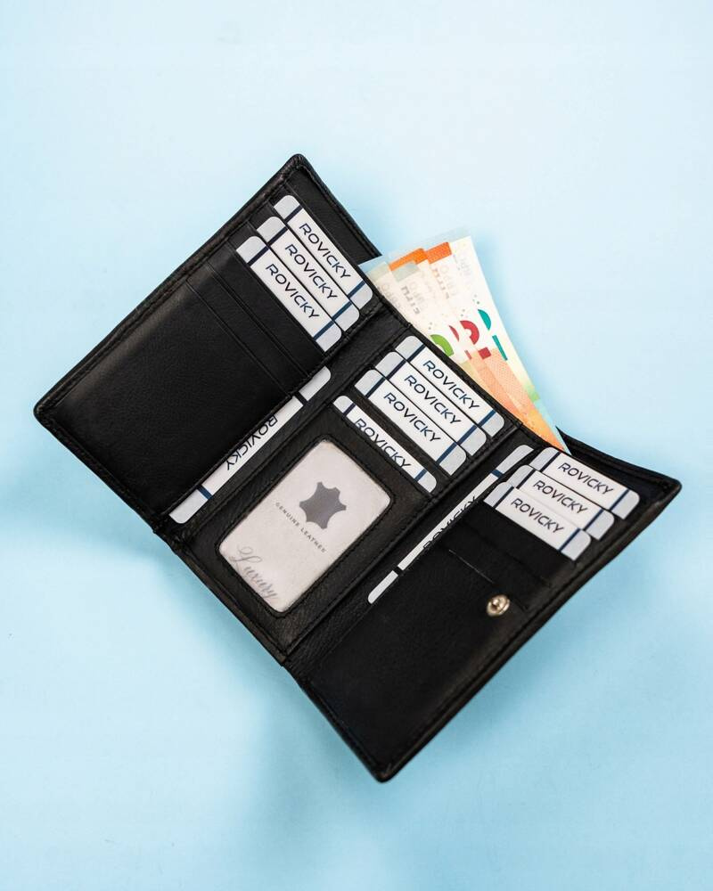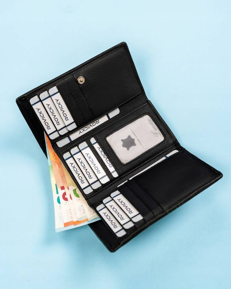Duży portfel damski na zatrzask wykonany ze skóry naturalnej – Rovicky