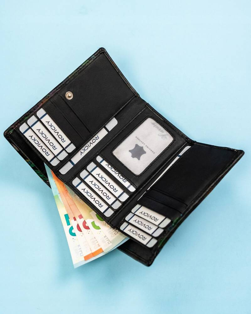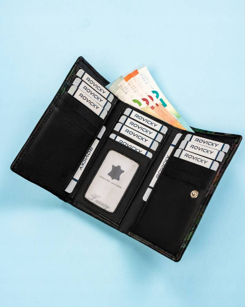 Duży portfel damski na zatrzask wykonany ze skóry naturalnej – Rovicky