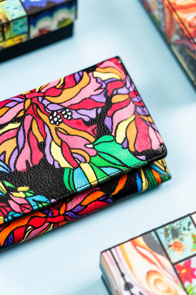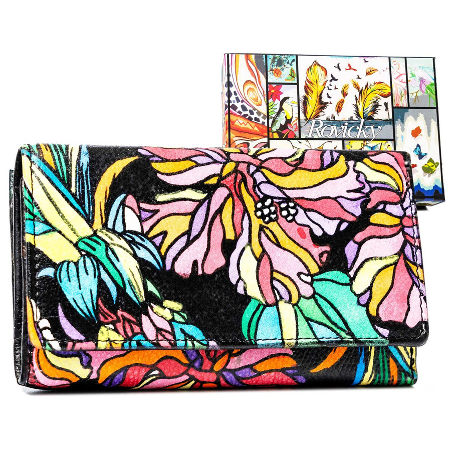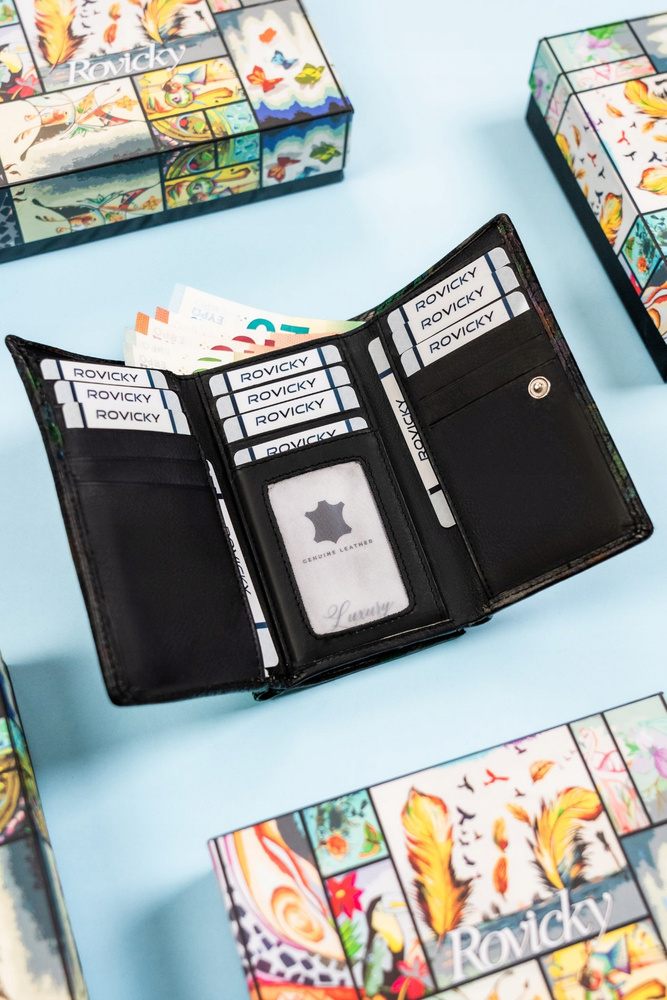 - Artystyczny design | Nowoczesny design połączony z klasycznym kształtem. Dzięki zastosowaniu artystycznych wzorów imitujących ręczne malowidła portfel prezentuje się wyjątkowo;
