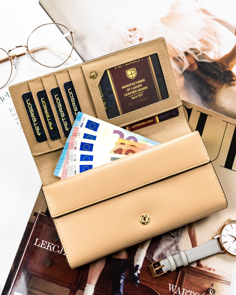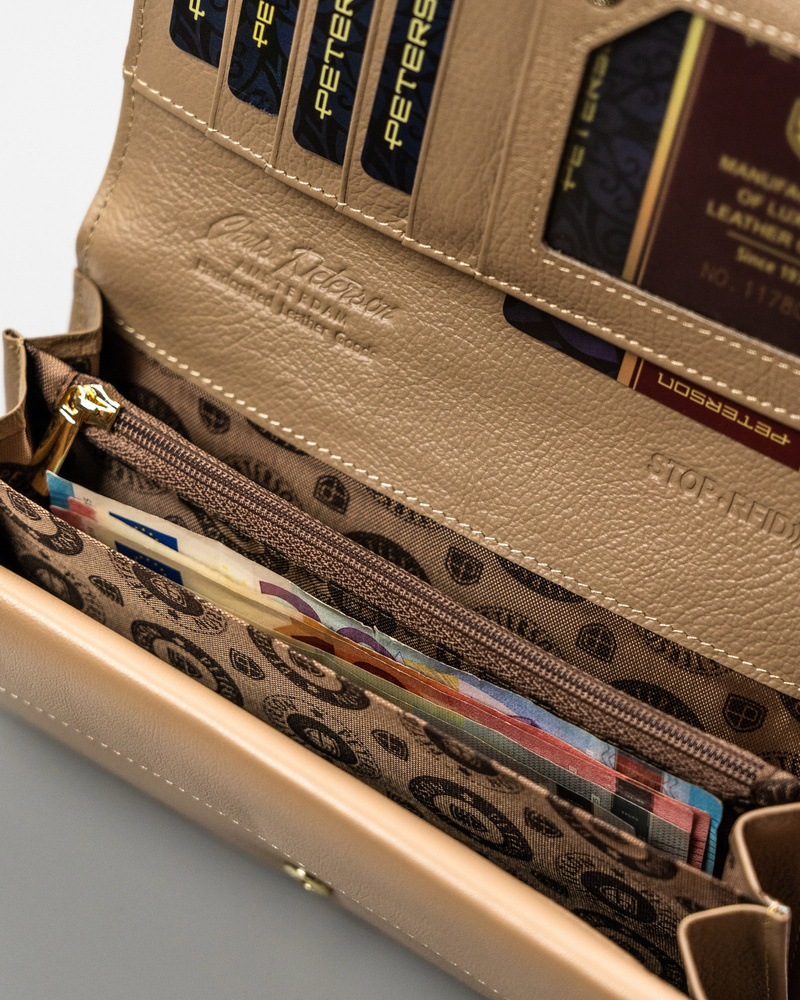 Duży portfel damski z podwójną sekcją na bilon — Peterson