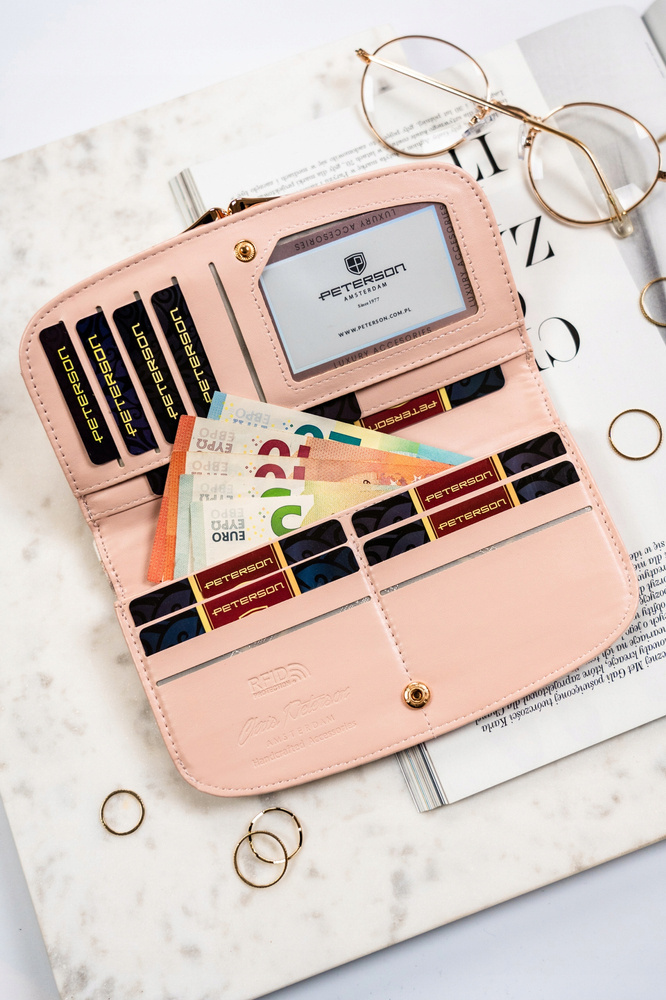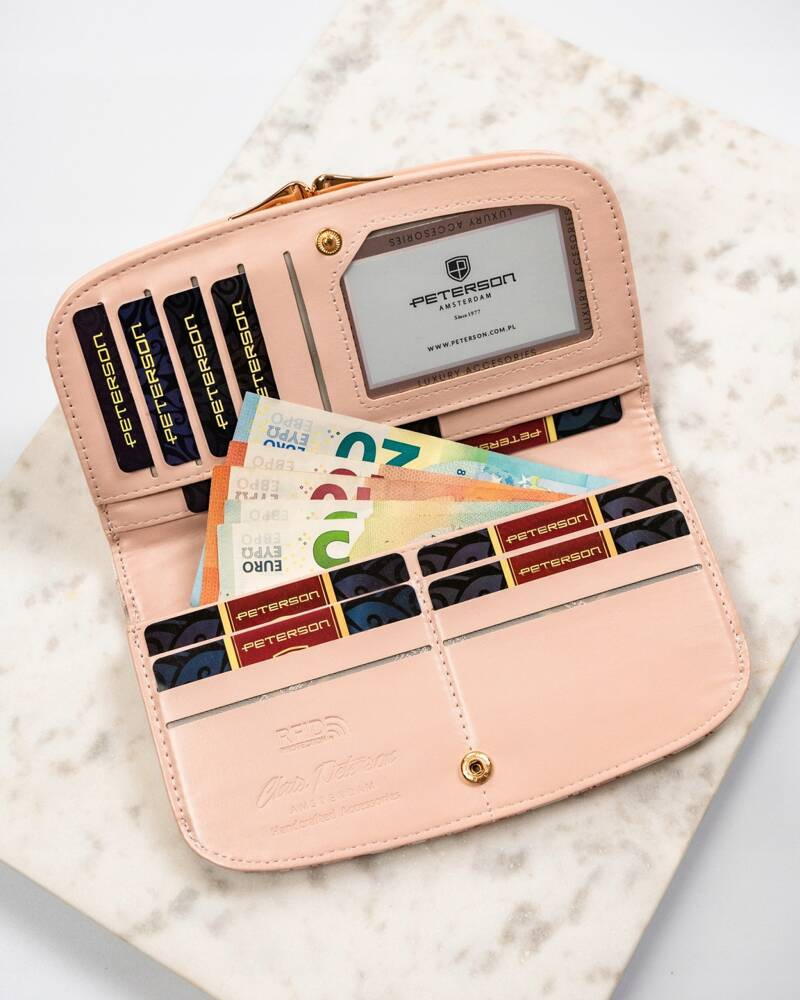 Duży portfel damski ze skóry ekologicznej w kwiatowy wzór – Peterson