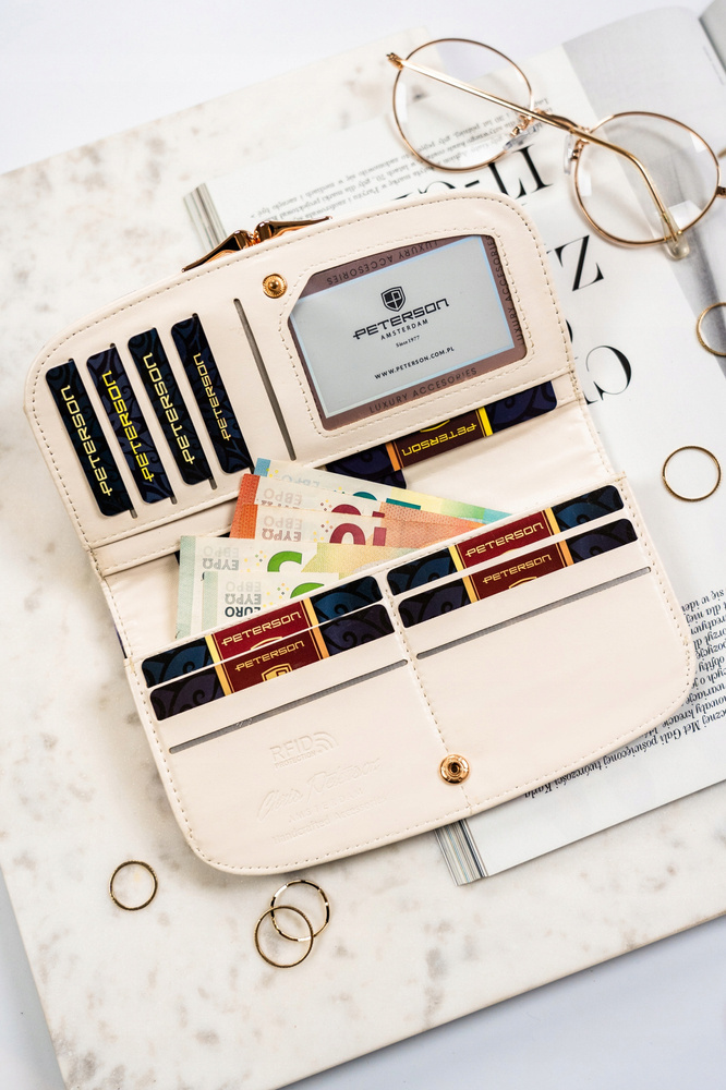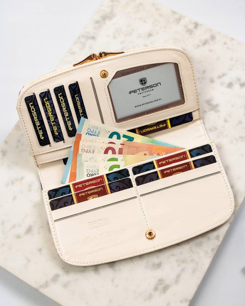 Duży portfel damski ze skóry ekologicznej w kwiatowy wzór - PetersonDuży portfel damski ze skóry ekologicznej w kwiatowy wzór – Peterson