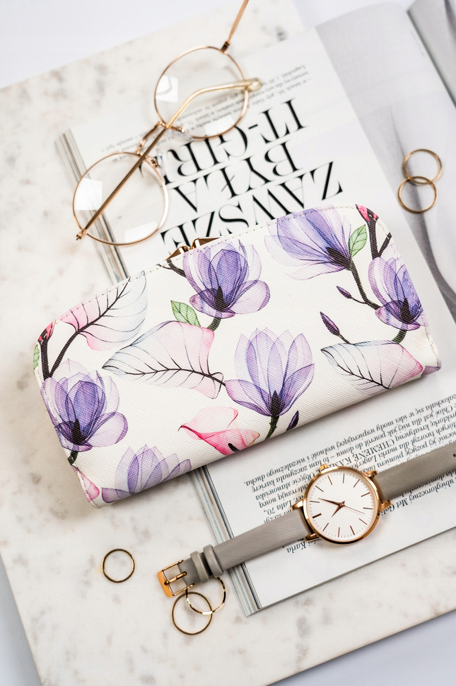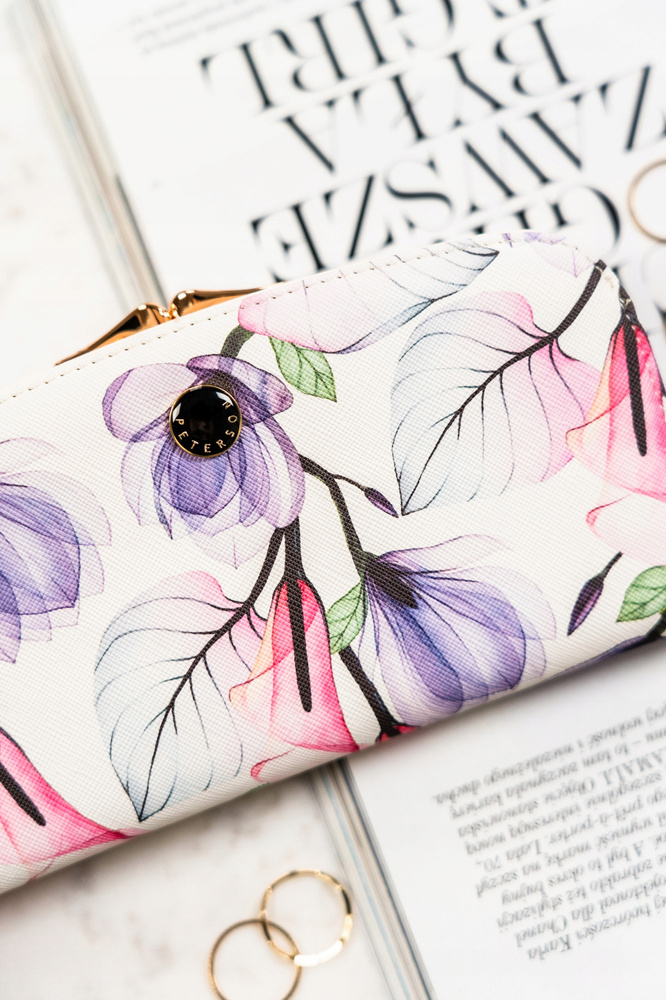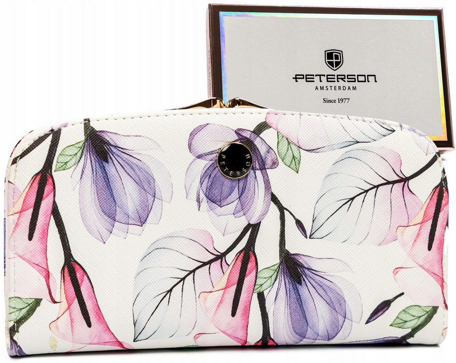 Duży portfel damski ze skóry ekologicznej w kwiatowy wzór – Peterson
