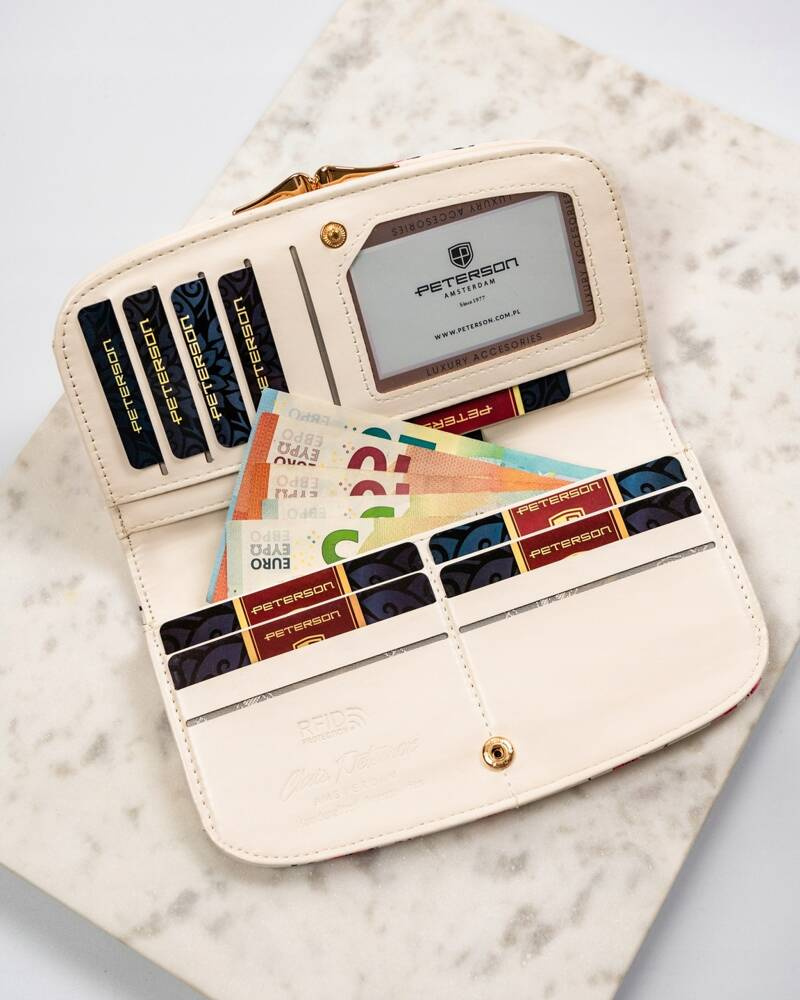 Duży portfel damski ze skóry ekologicznej w kwiatowy wzór – Peterson