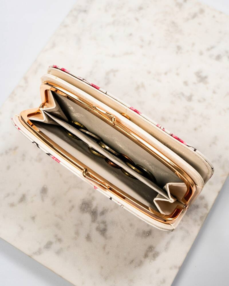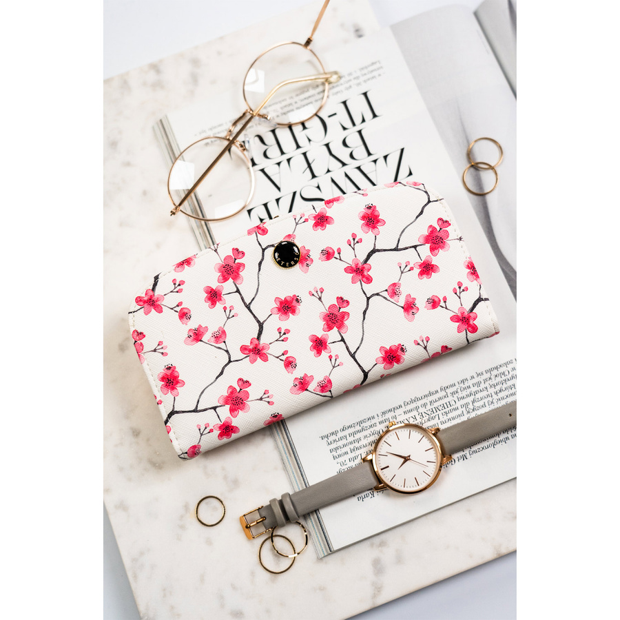 - Materiał i design | Portfel został uszyty z wytrzymałej skóry ekologicznej ozdobionej pięknym, kwiatowym motywem;