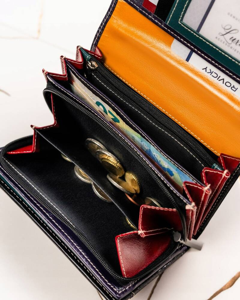 - 1 schowek w centralnej części portfela, zamykany na suwak.