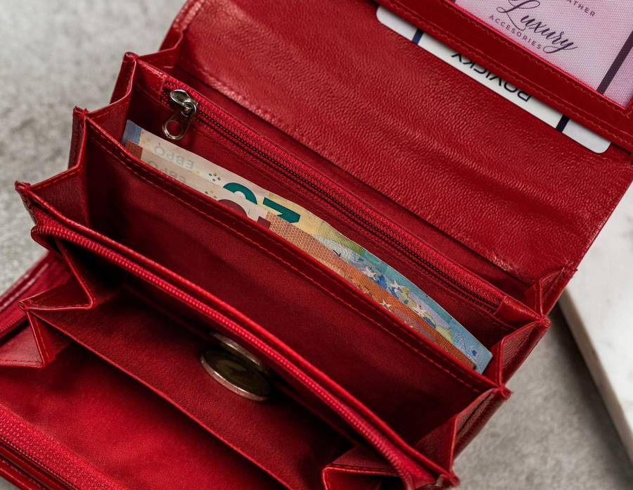 • 1 schowek w centralnej części portfela, zamykany na suwak.