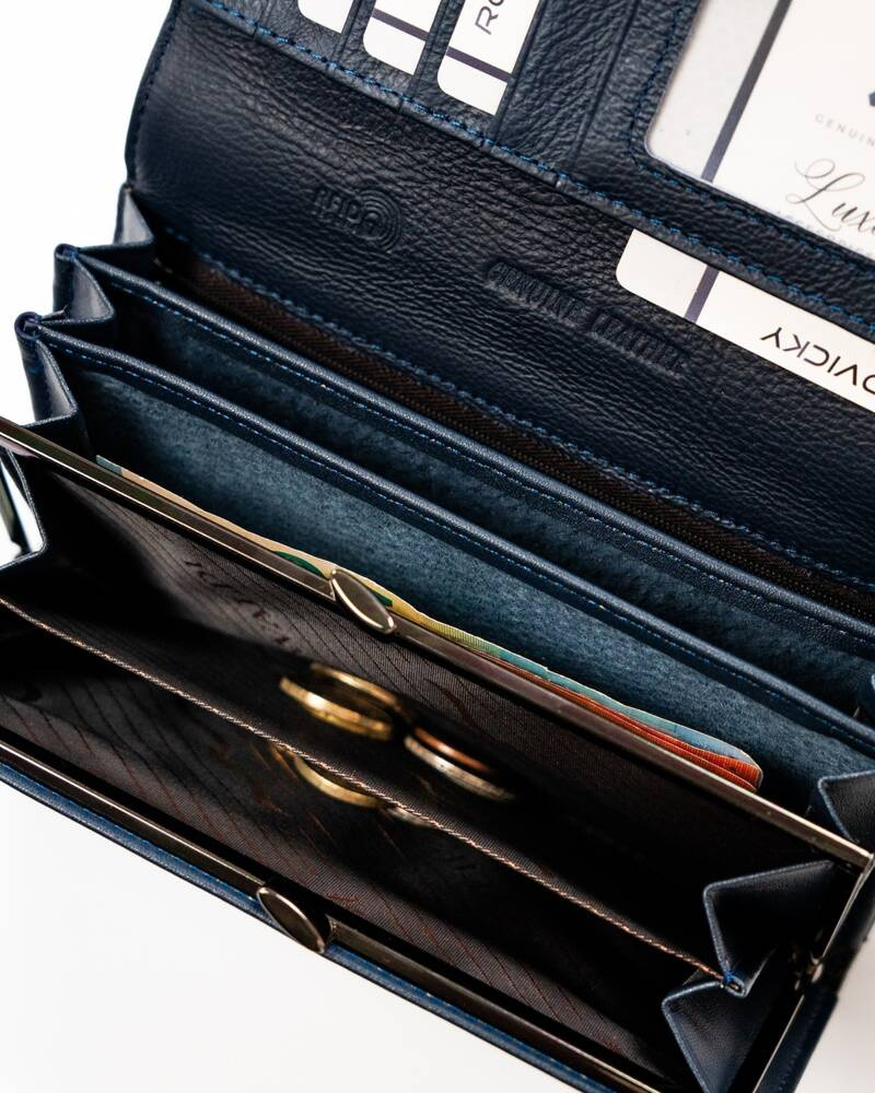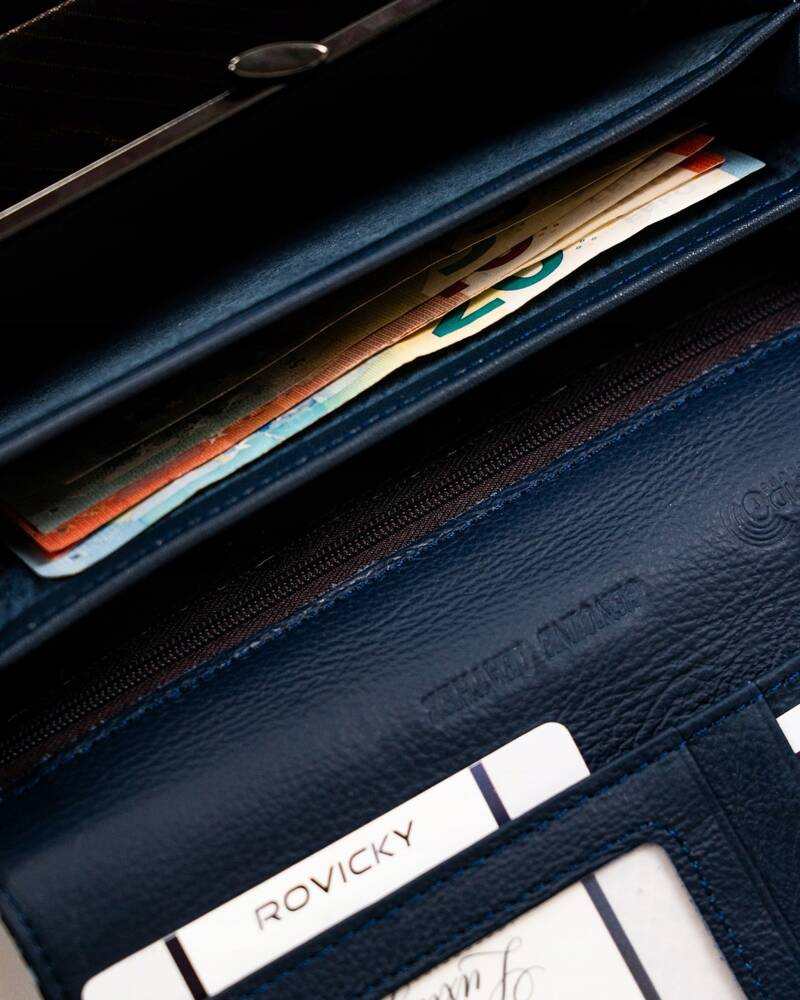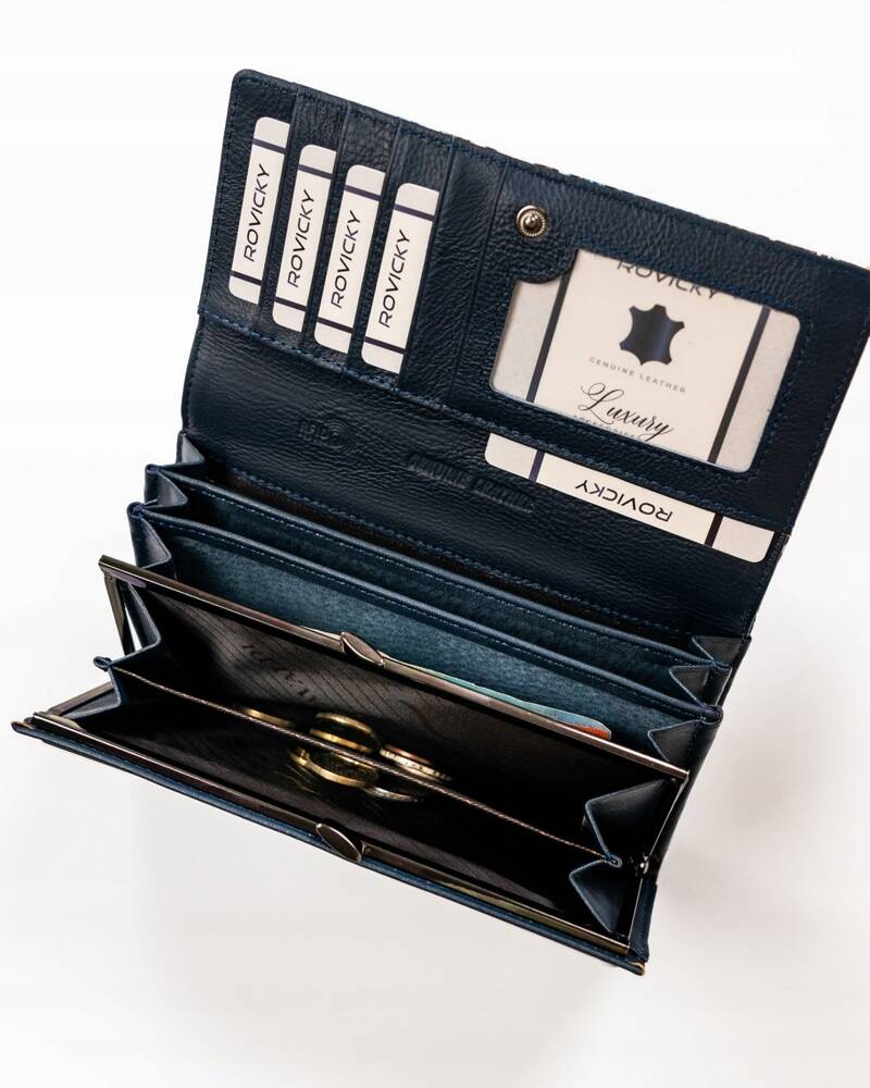 Wnętrze tego modelu pomieści bardzo dużą ilość kart, dokumentów, banknotów i bilonu.