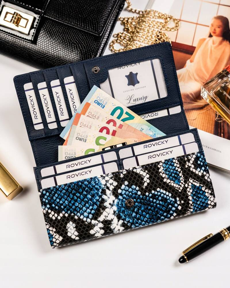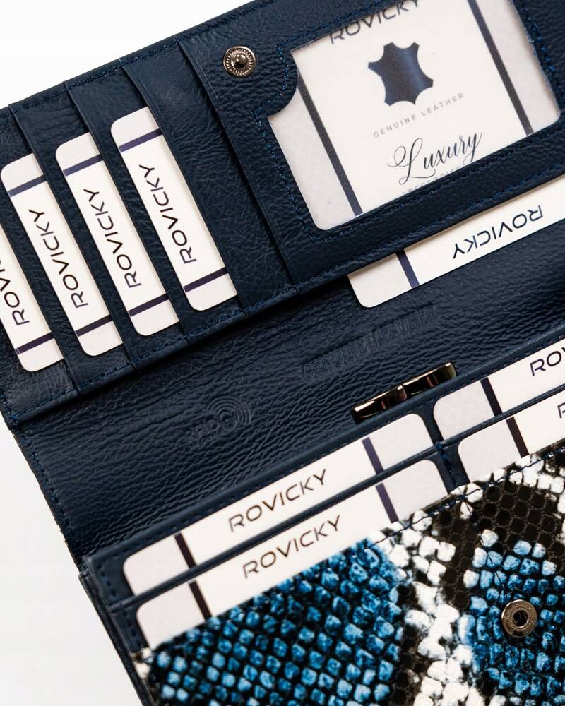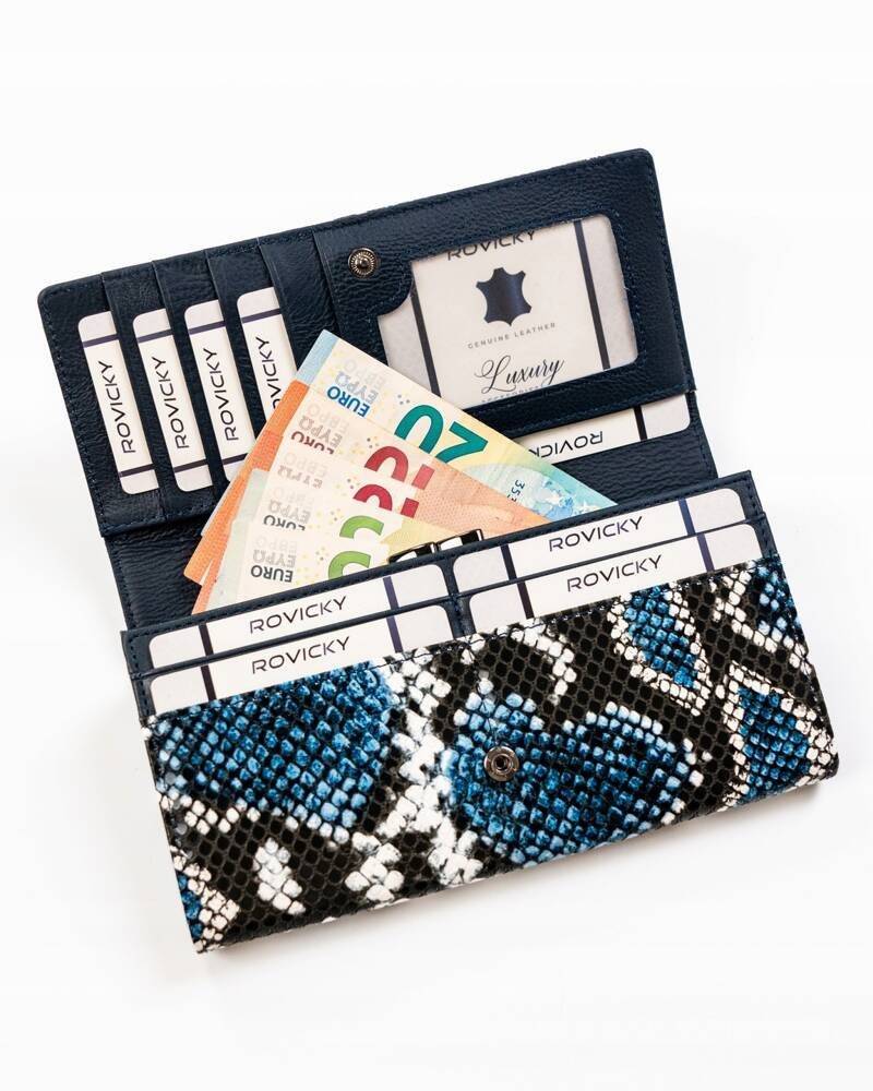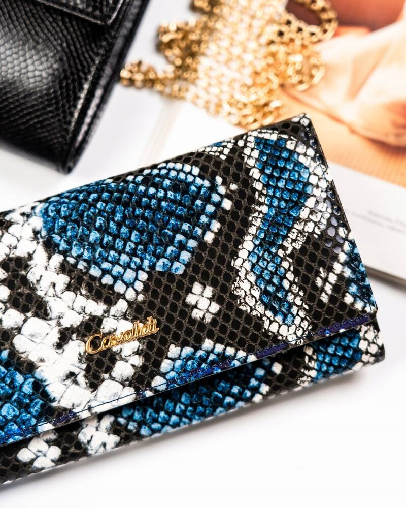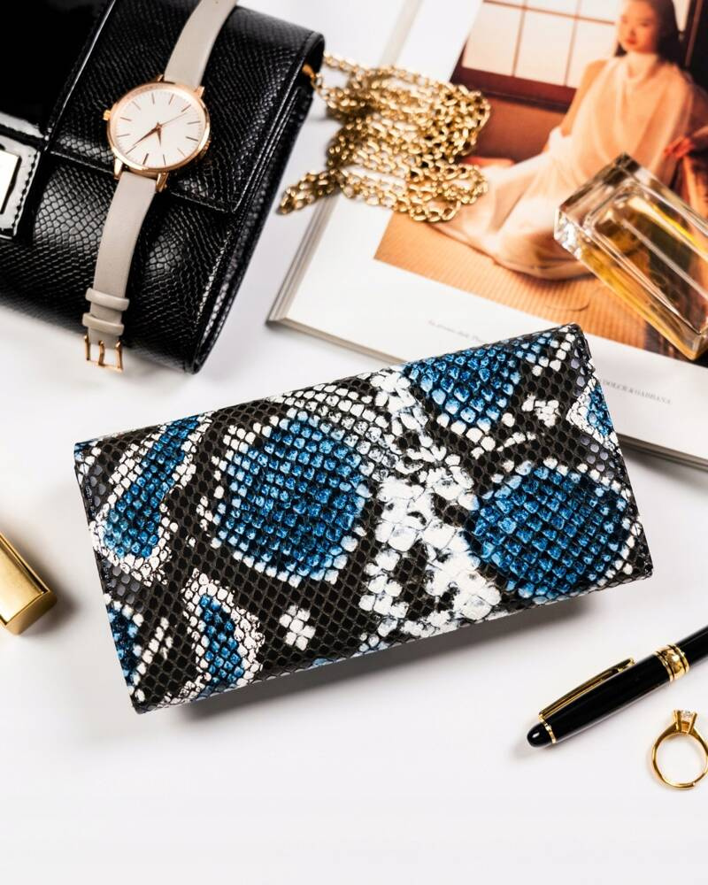 - Skóra węża | Portfel charakteryzuje się pięknym motywem skóry węża;