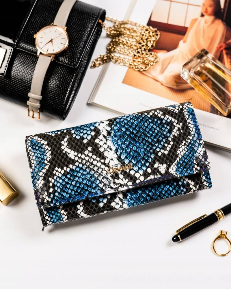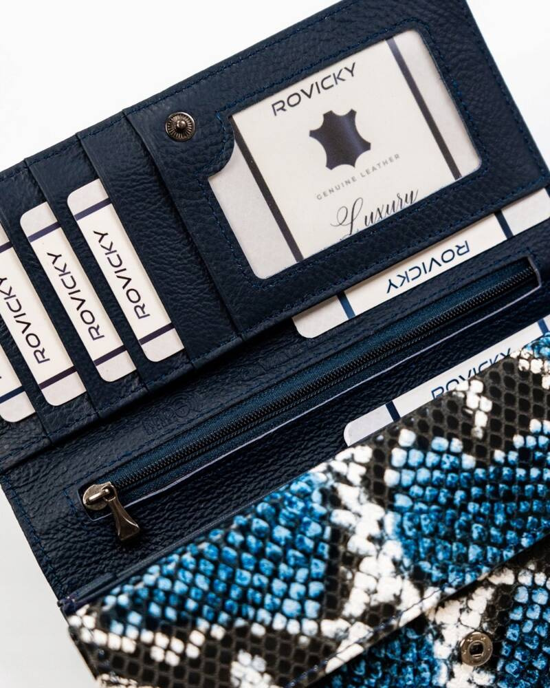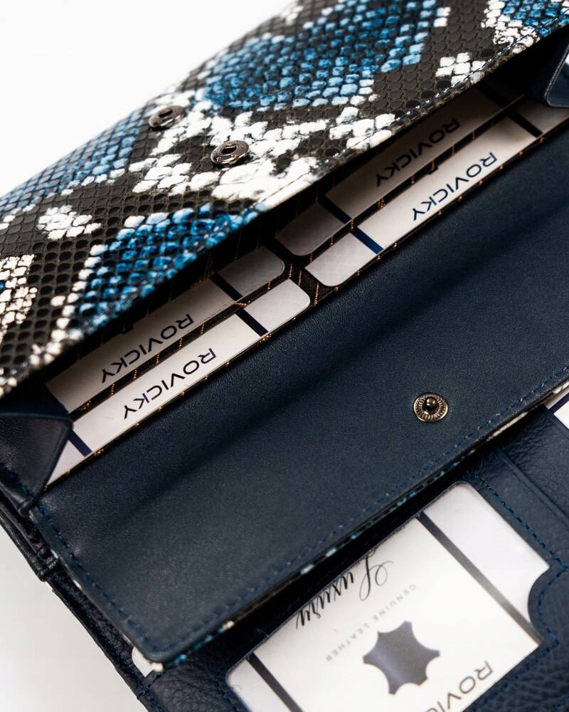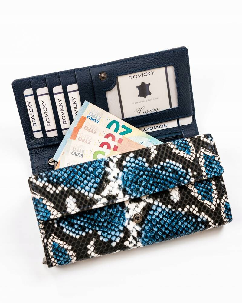 - Skóra węża | Portfel charakteryzuje się pięknym motywem skóry węża;