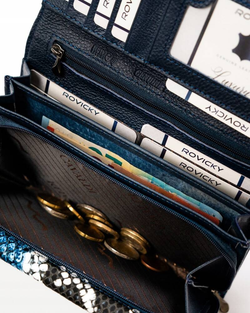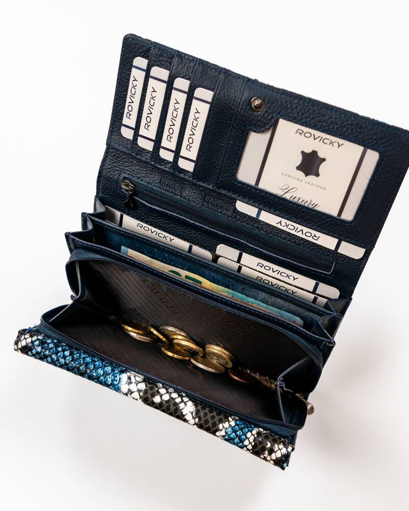 Wnętrze tego modelu pomieści bardzo dużą ilość kart, dokumentów, banknotów i bilonu.
