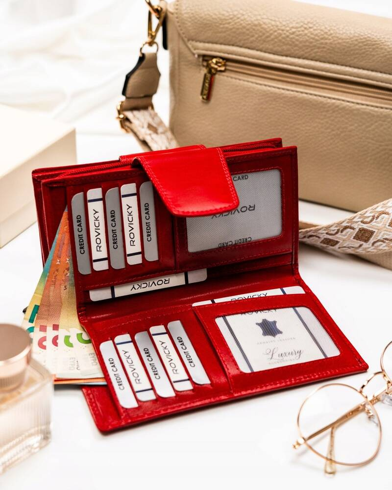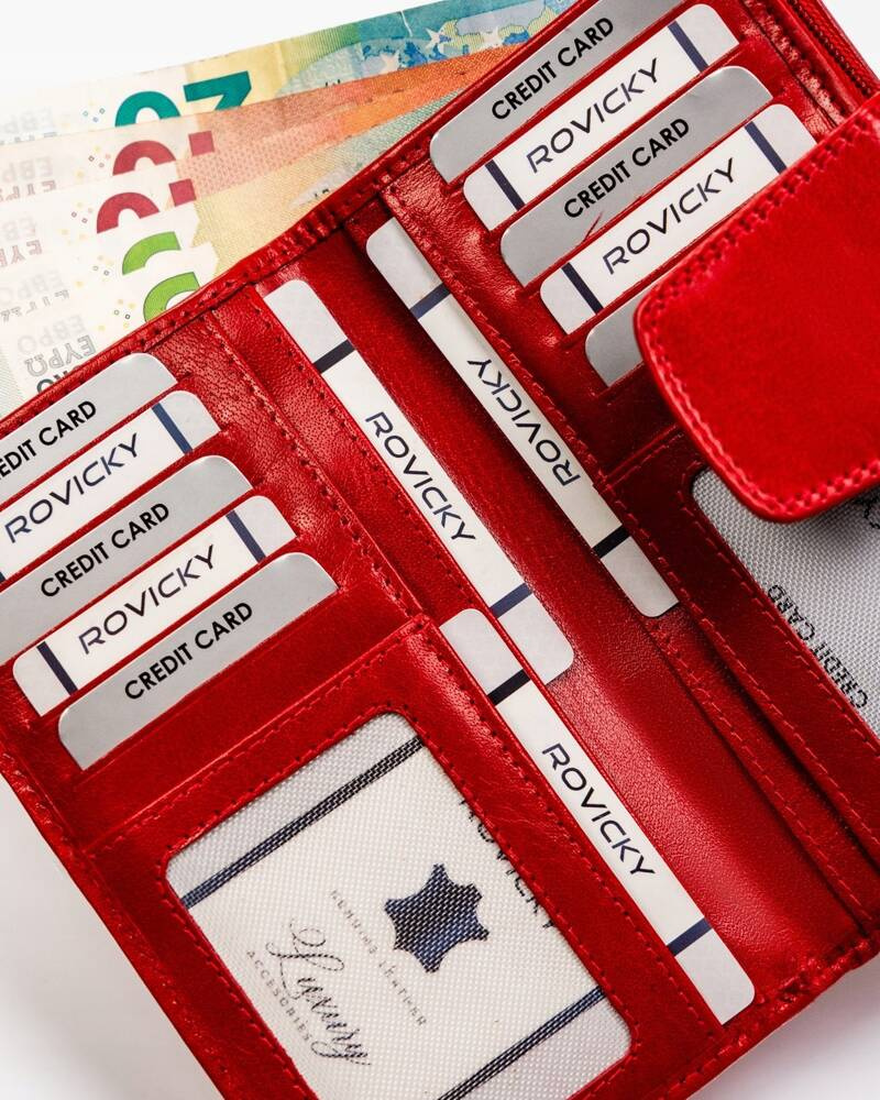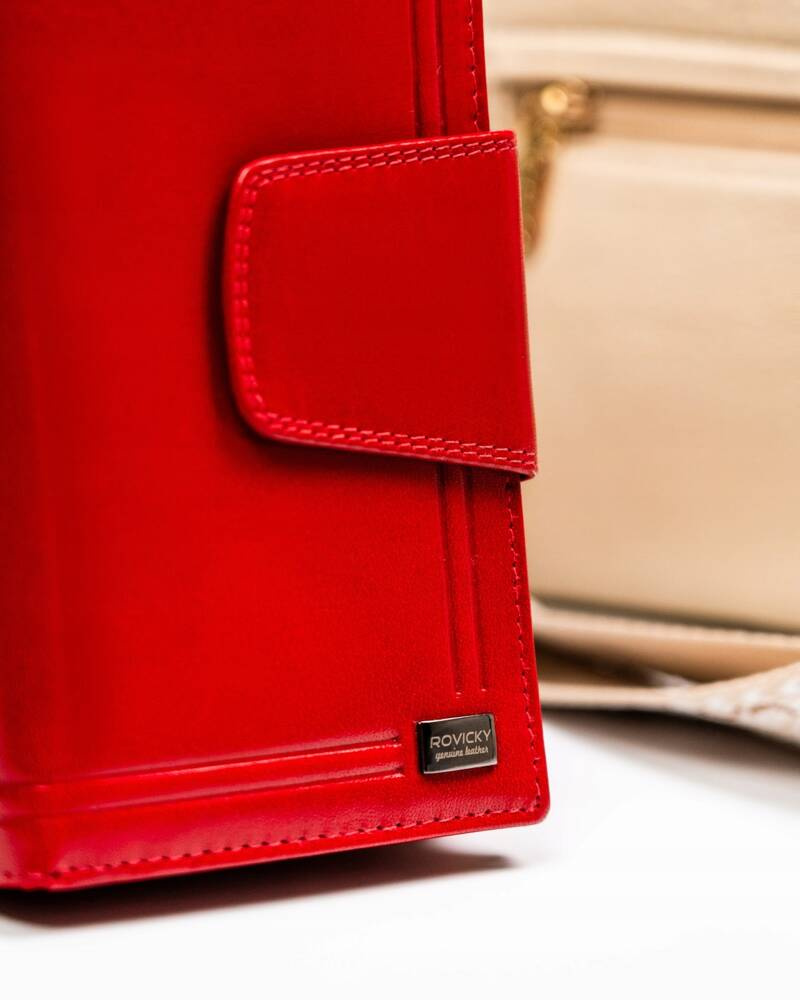 Duży portfel damski ze skóry naturalnej na zamek i zatrzask - RovickyDuży portfel damski ze skóry naturalnej na zamek i zatrzask – Rovicky