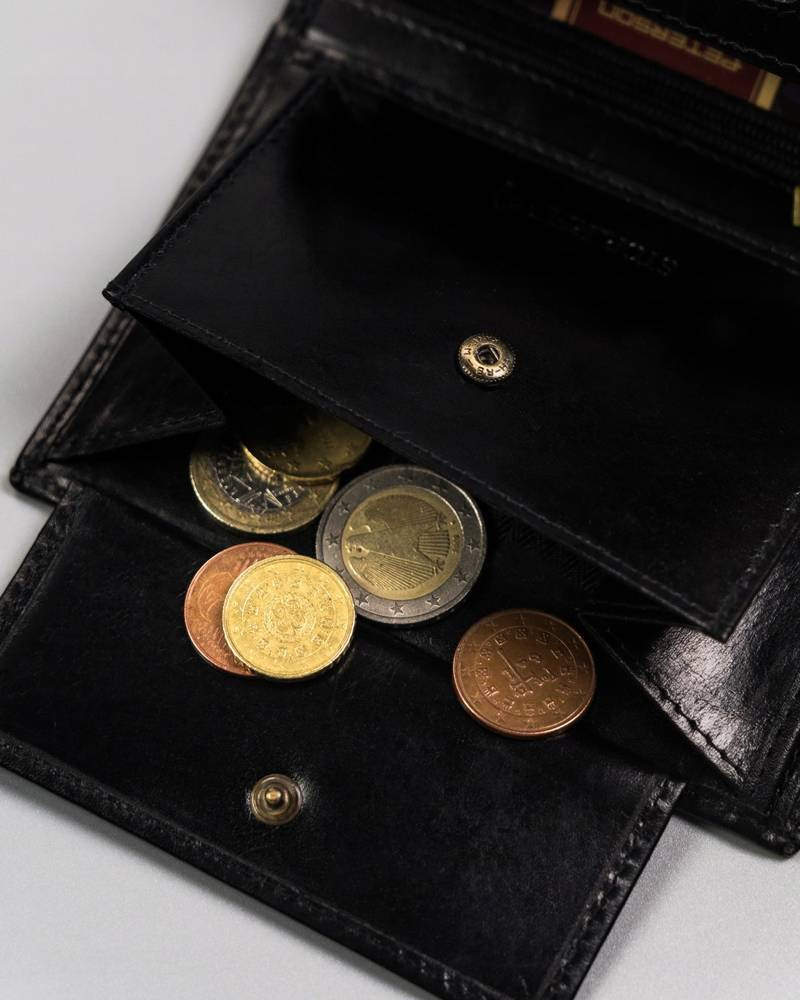 - banknoty schowasz do 2 otwartych przegródek wyszytych po całej szerokości portfela.